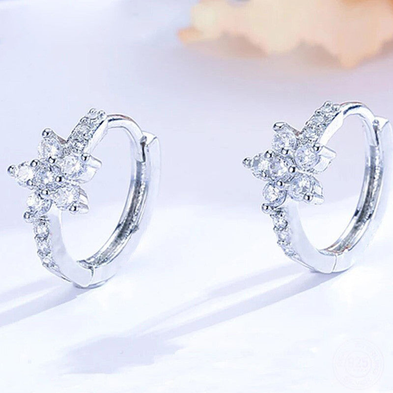 Silver Plated American Diamond Studded Floral Themed Drop Earrings