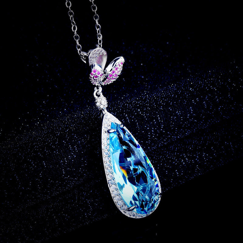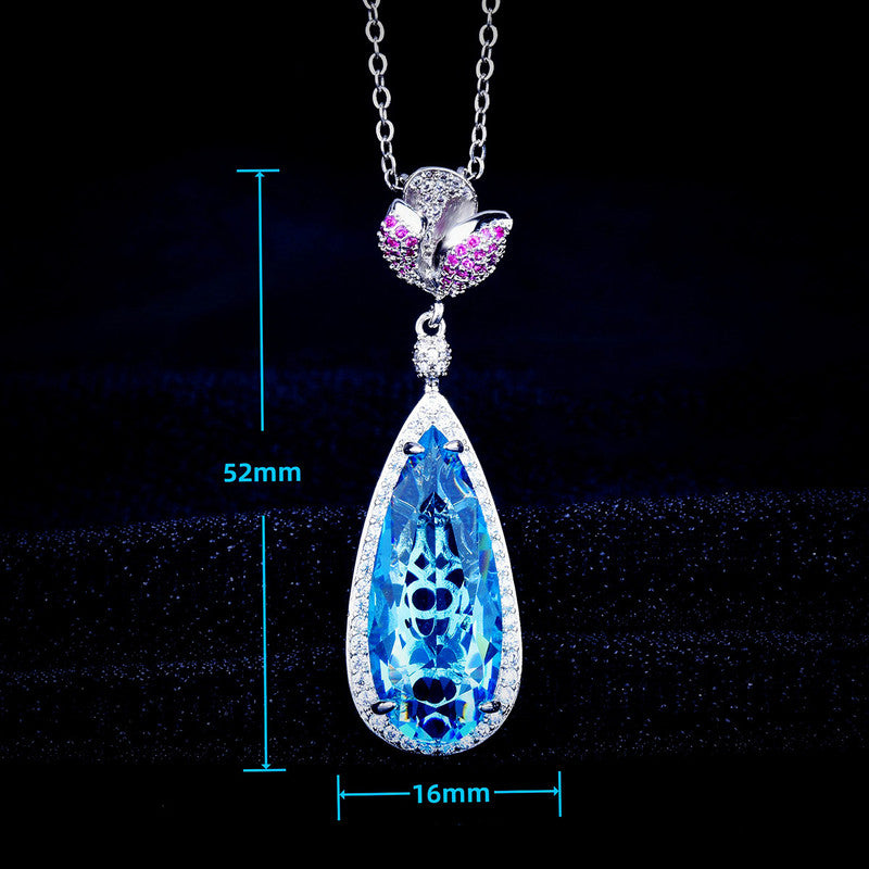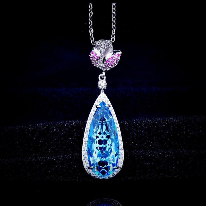 Designs & You Blue Silver Plated American Diamond Studded Teardrop Shaped Necklace