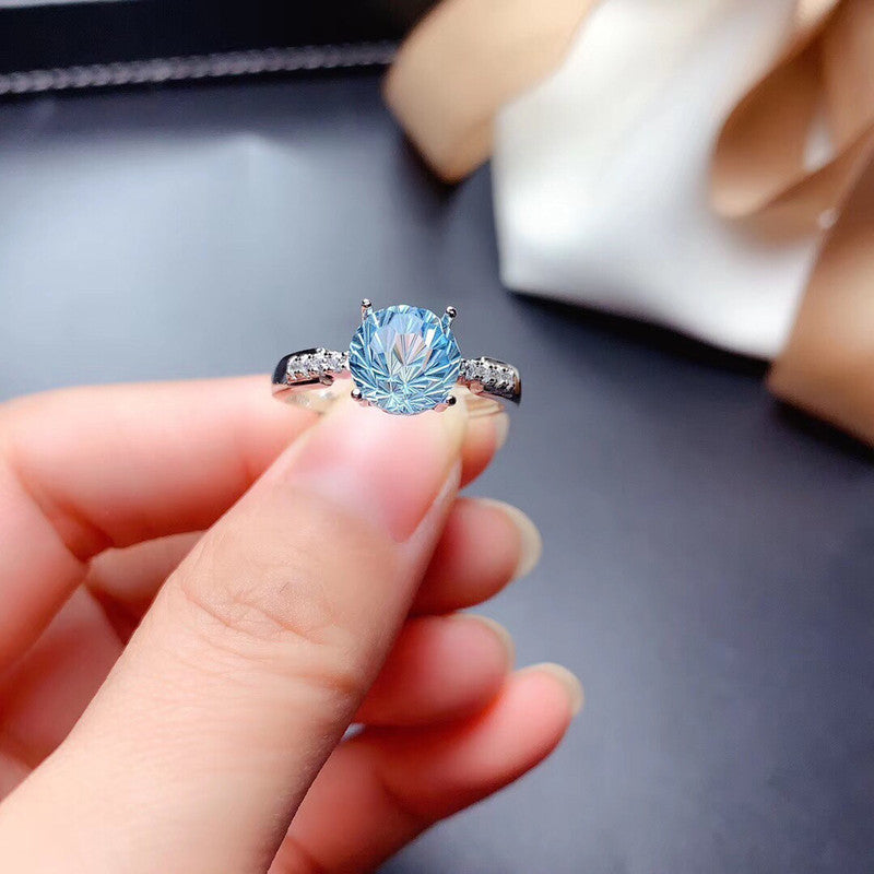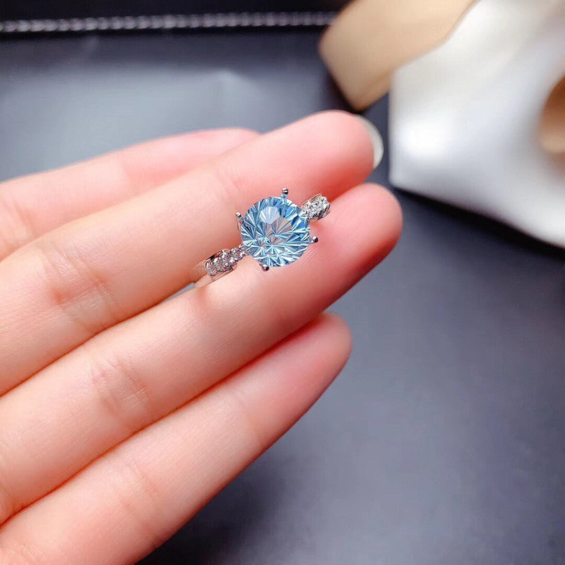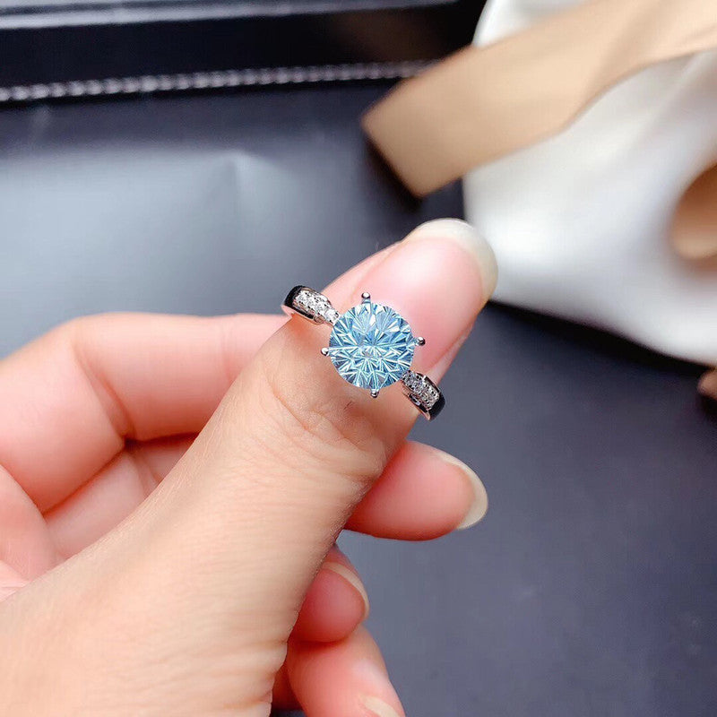 Designs & You Blue Silver Plated Cubic Zirconia Stone Studded Adjustable Ring