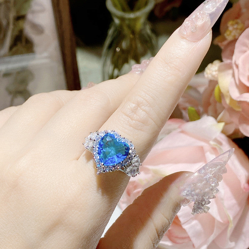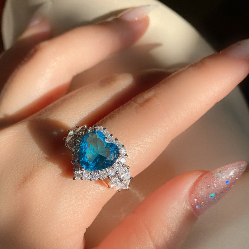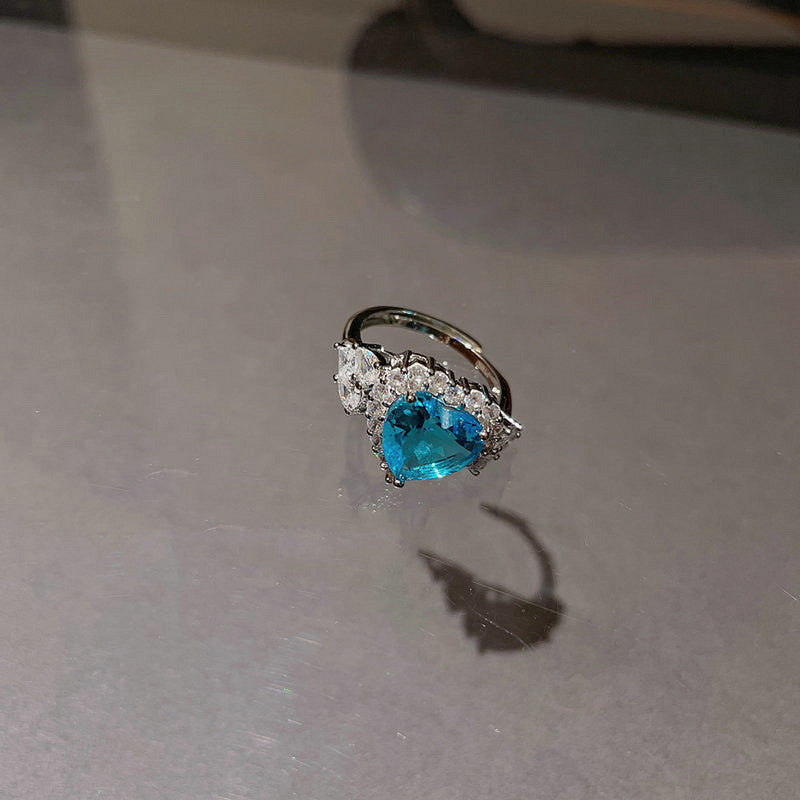 Designs & You Blue Silver Plated Cubic Zirconia Studded Adjustable Rin
