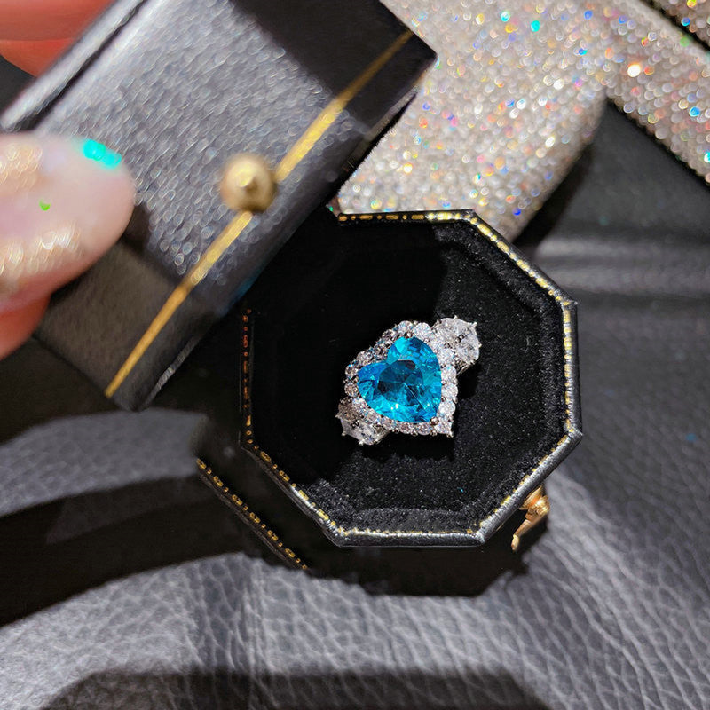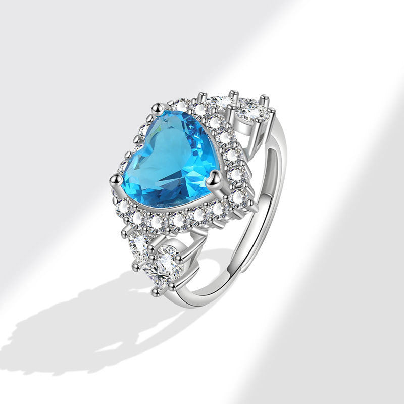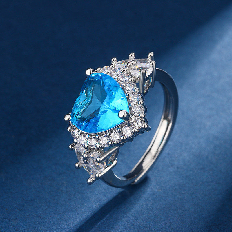 Designs & You Blue Silver Plated Cubic Zirconia Studded Adjustable Ring