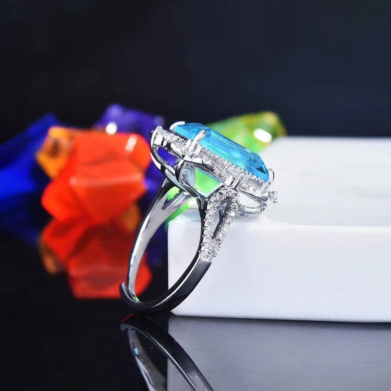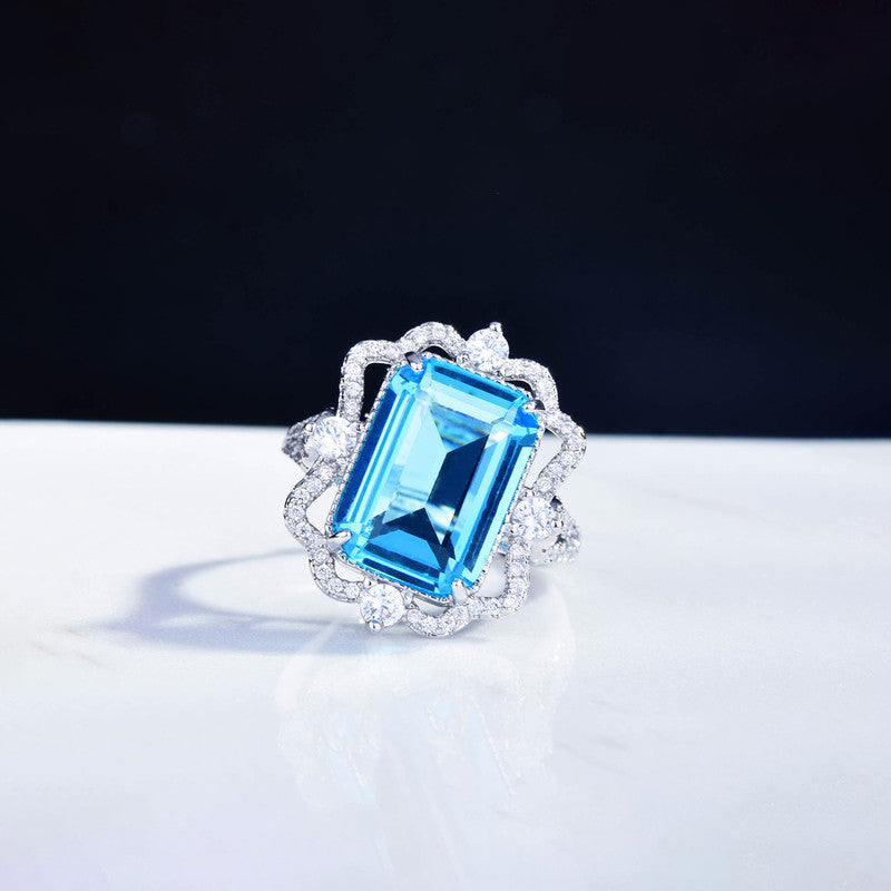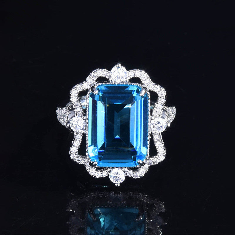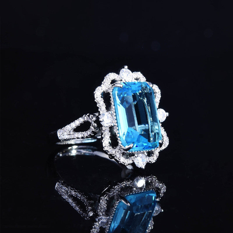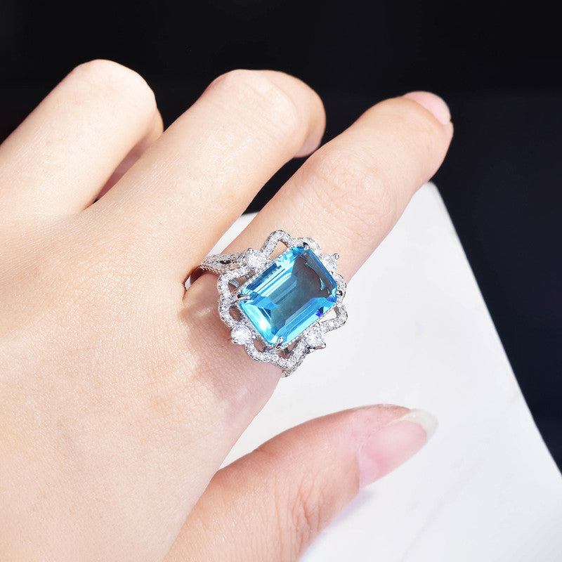 Designs & You Blue Silver Plated Cubic Zirconia Studded Ring