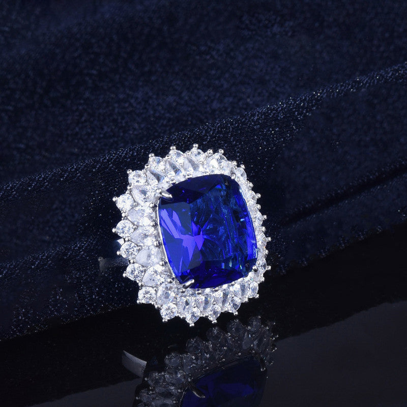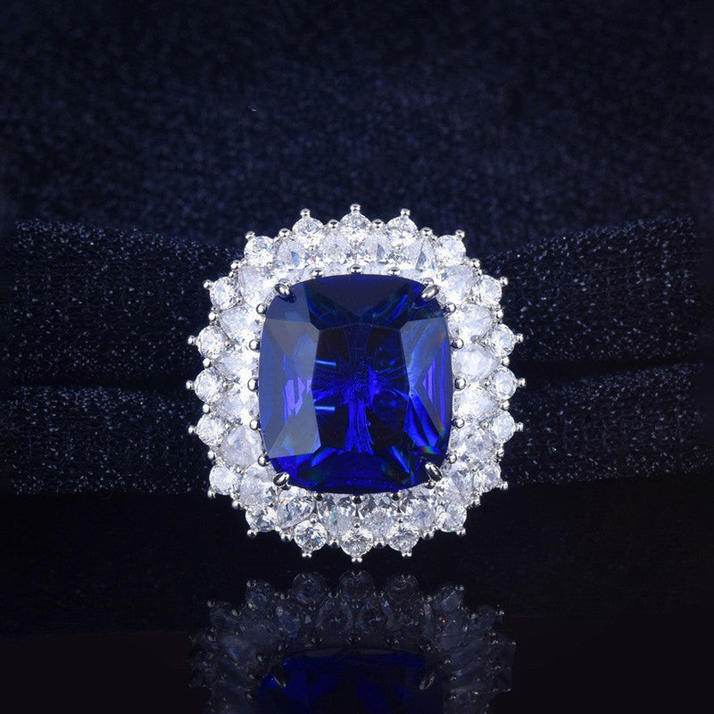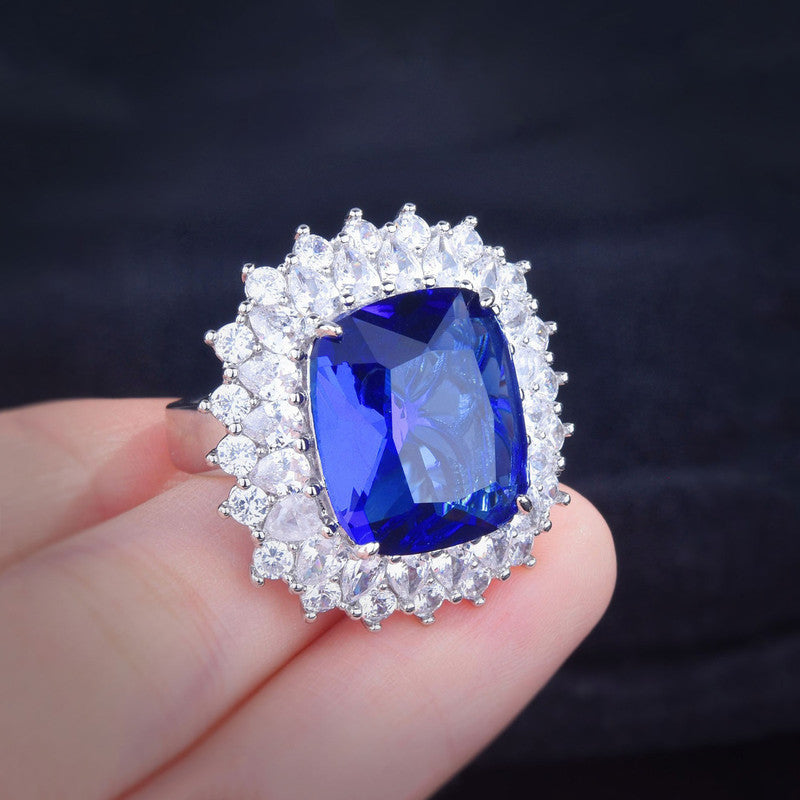 Designs & You Blue Silver Plated Cubic Zirconia Studded Ring