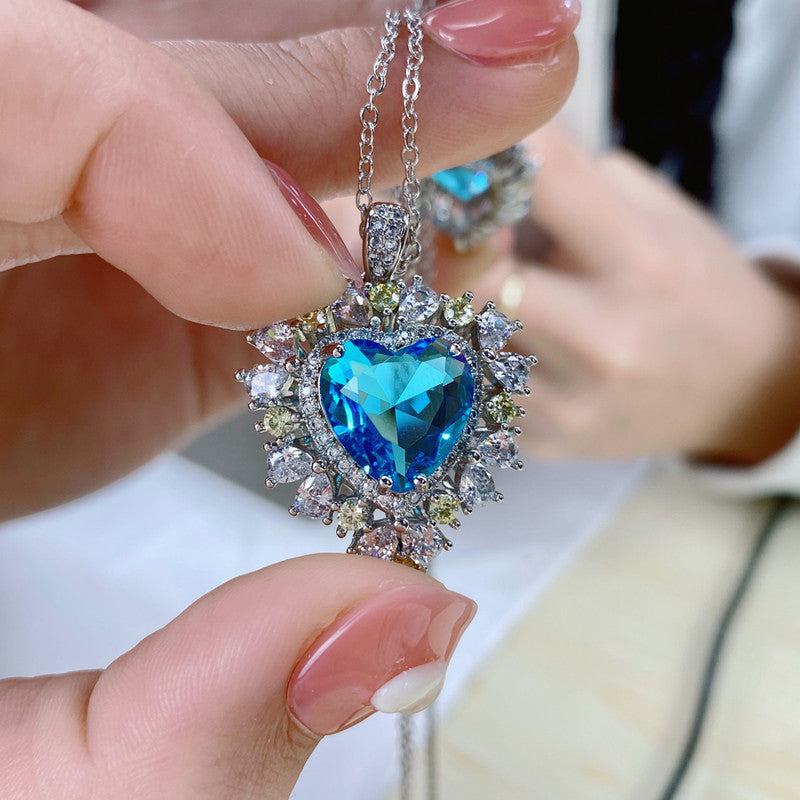 Designs & You Blue Silver Plated Heart Shaped Necklace
