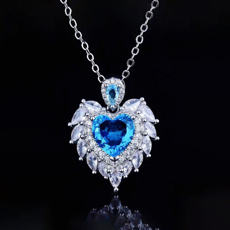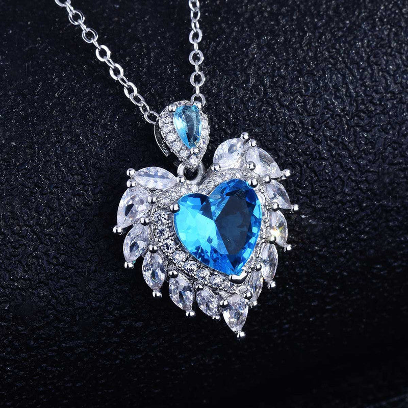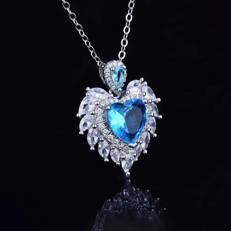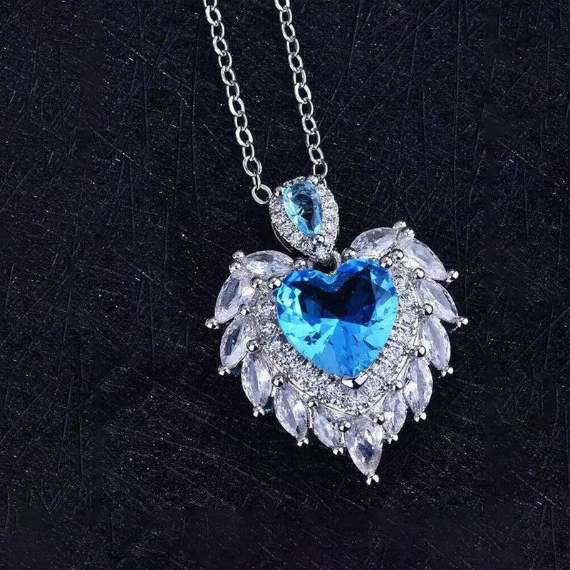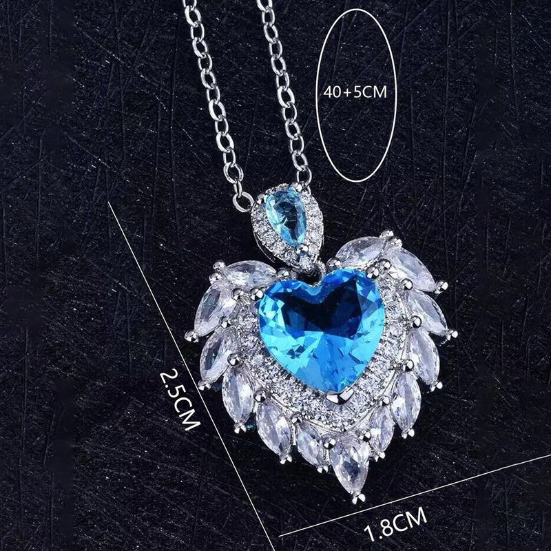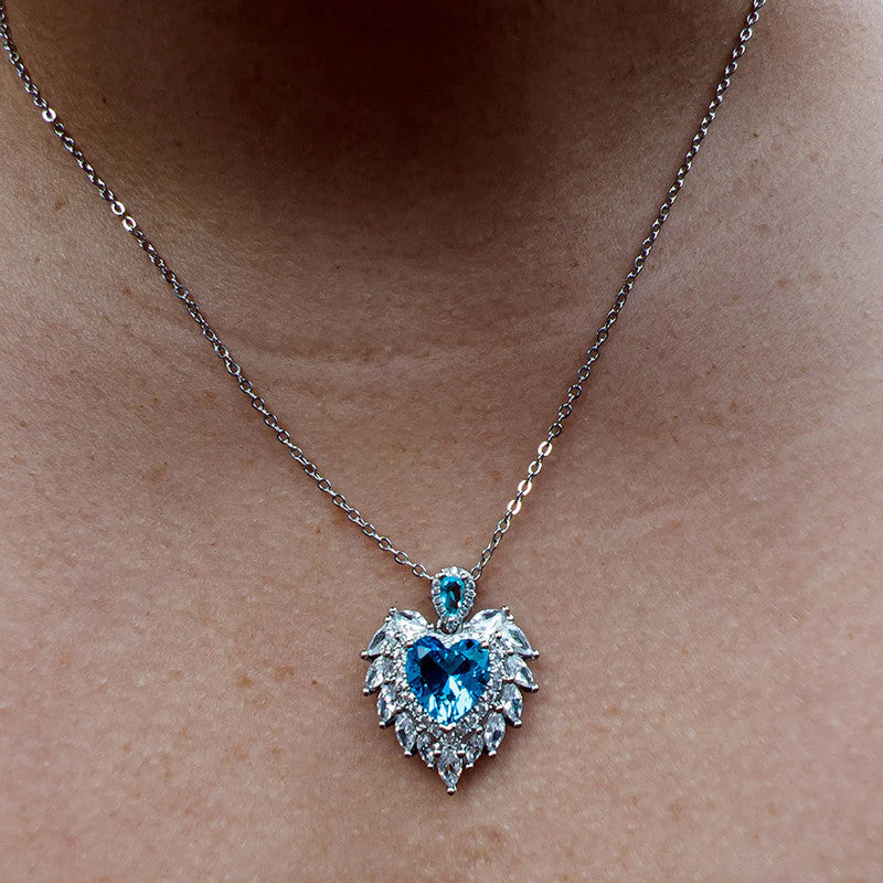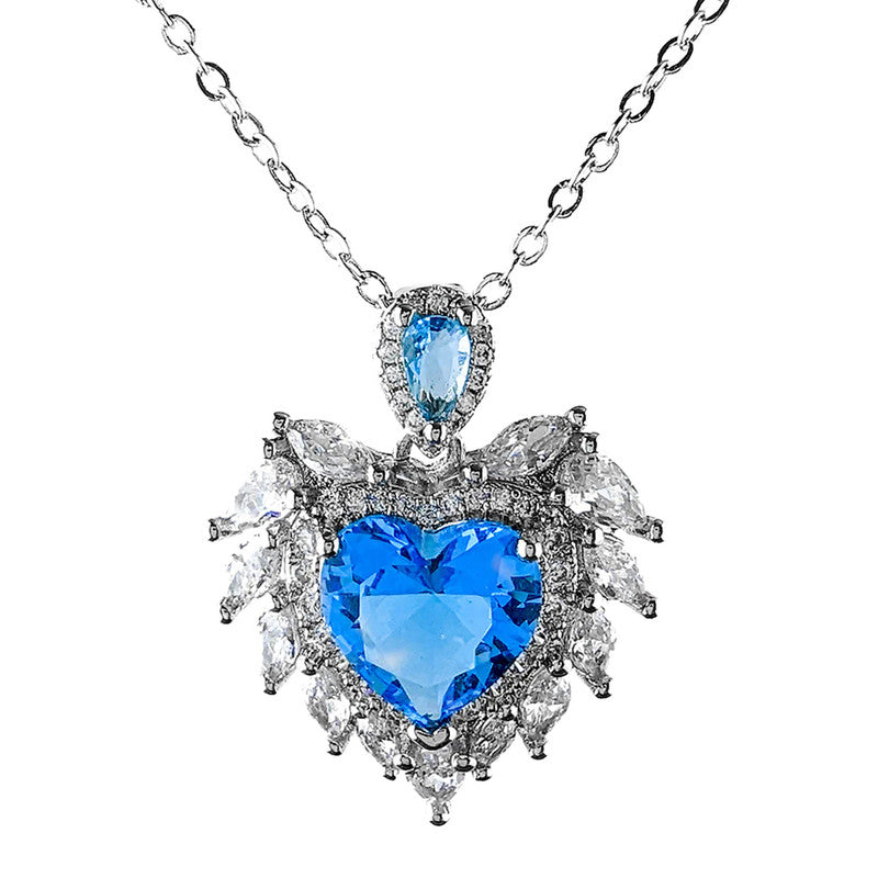 Designs & You Blue Silver Plated Stone Studded Heart Shaped Necklace