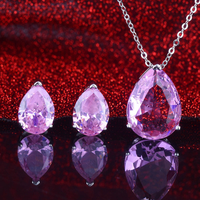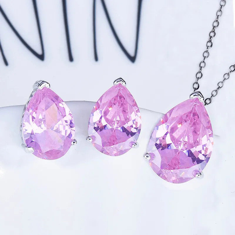 Designs & You Drop Pink Silver Plated Cubic Zirconia Studded Jewellery