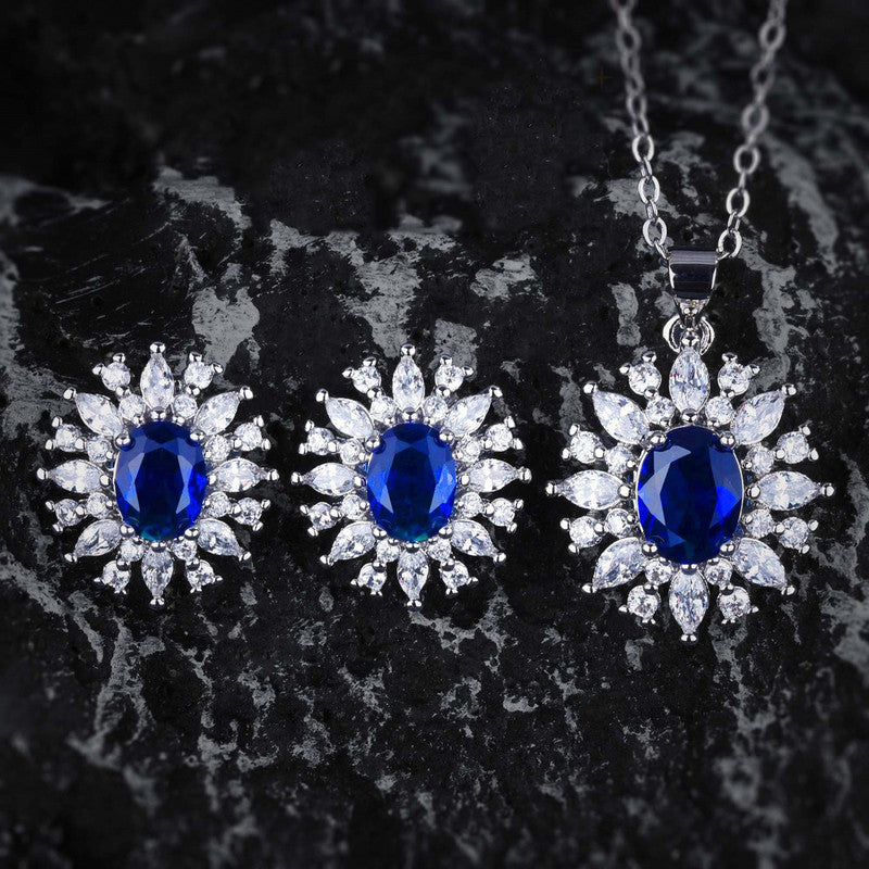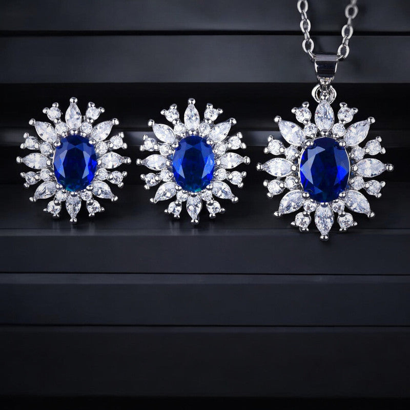 Designs & You Floral Blue Silver Plated Cubic Zirconia Studded Jewellery