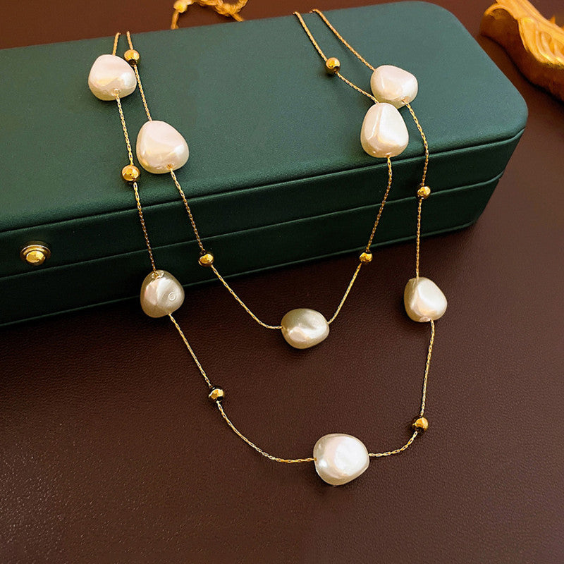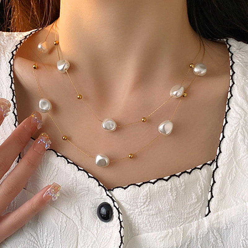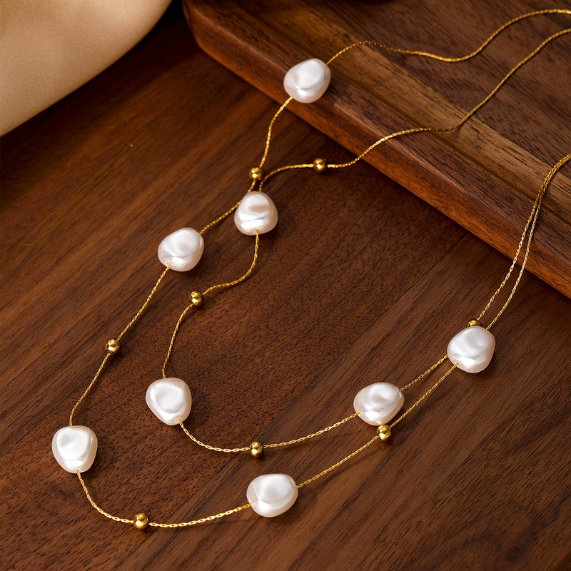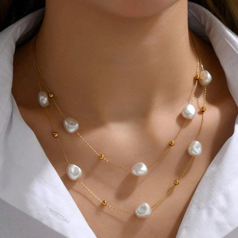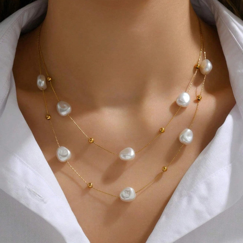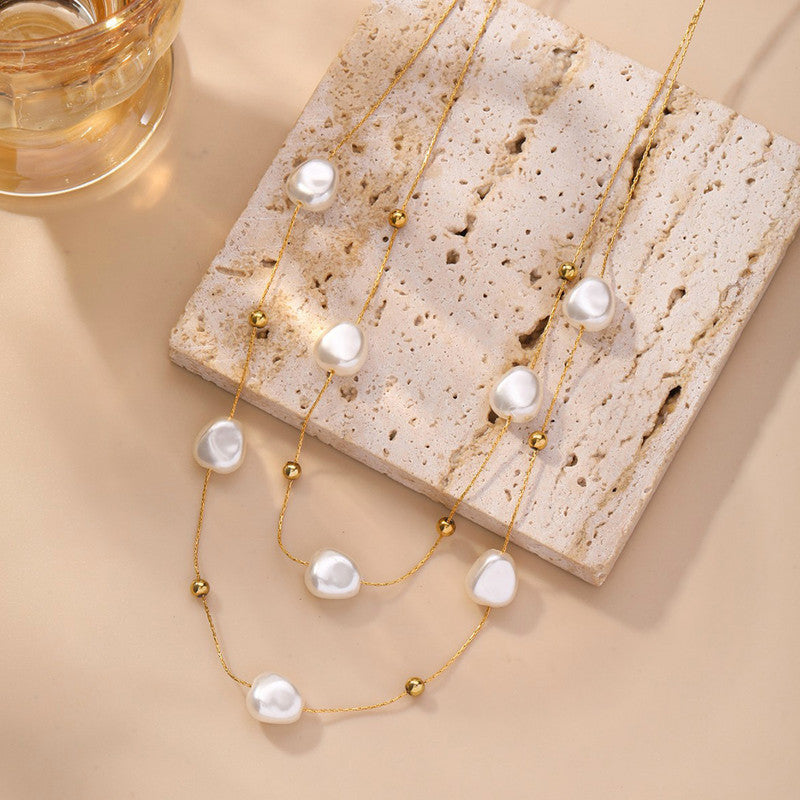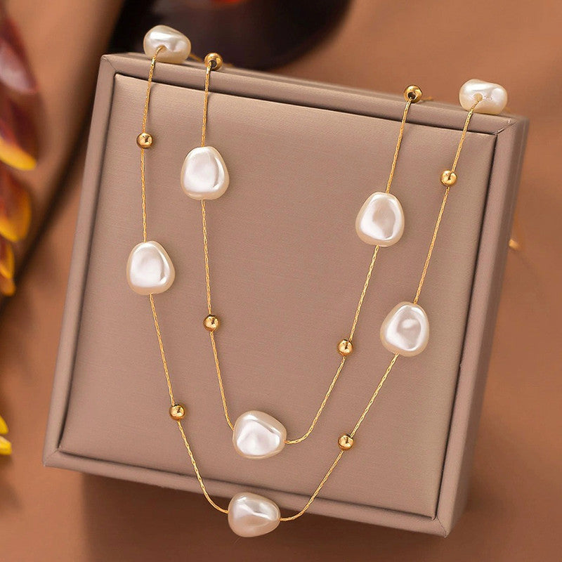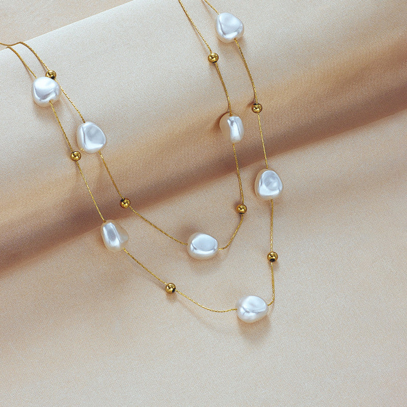 Designs & You Gold Plated Anti Tarnish Stainless Steel Pearl Studded Layered Necklace