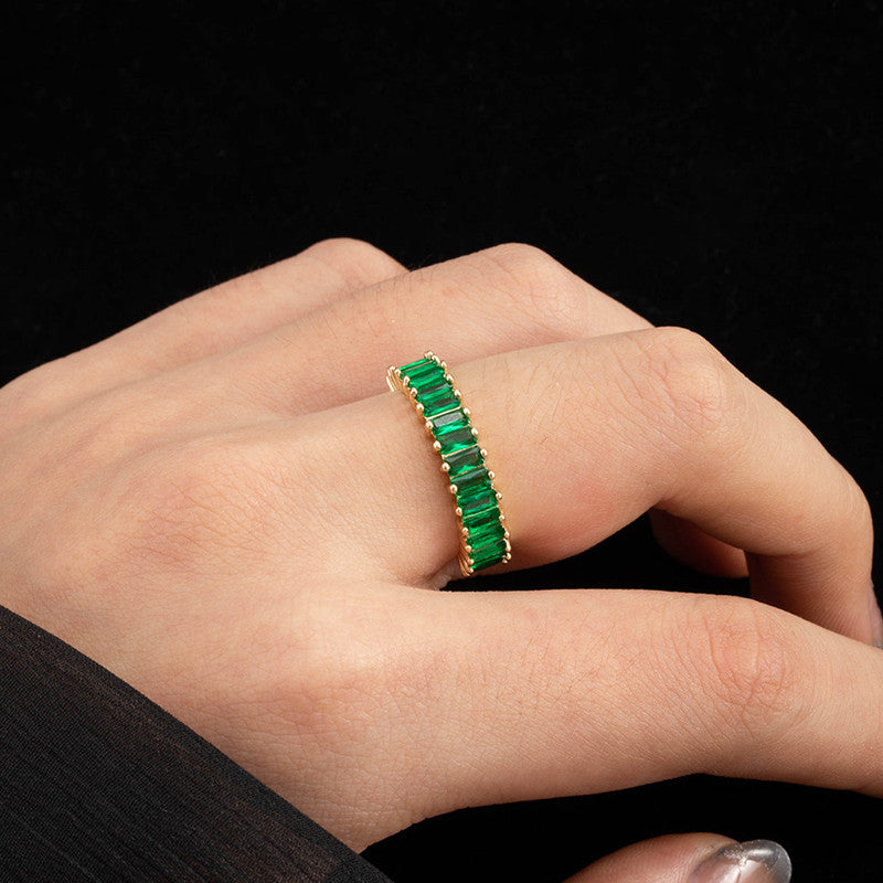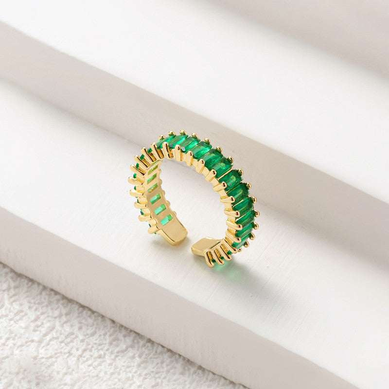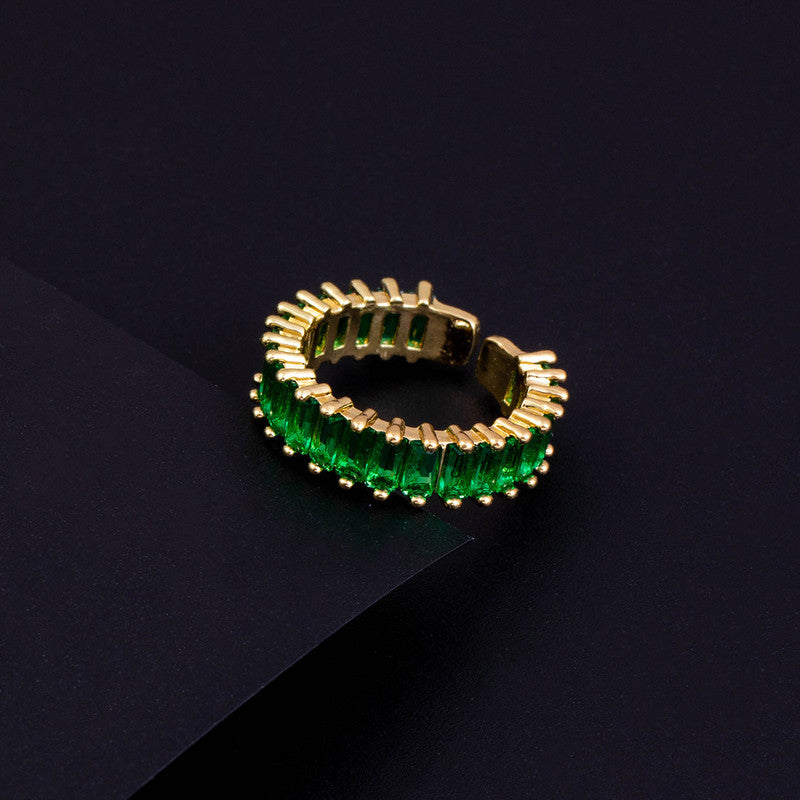 Designs & You Gold Plated Stainless Steel Anti Tarnish Green Adjustable Finger Ring For Women