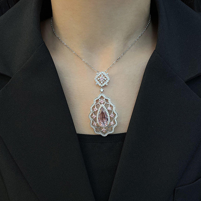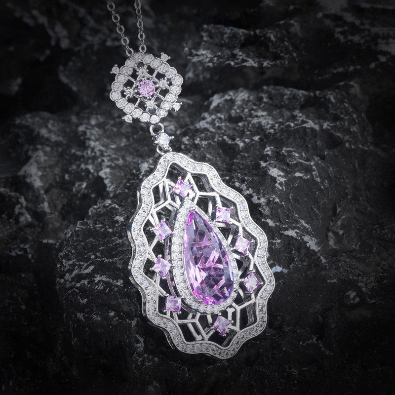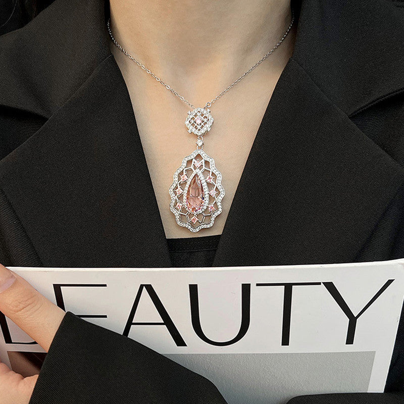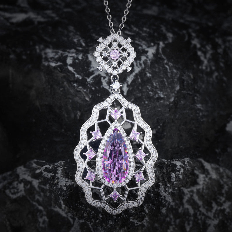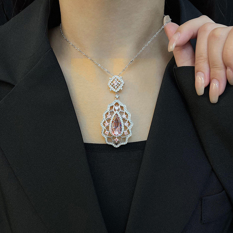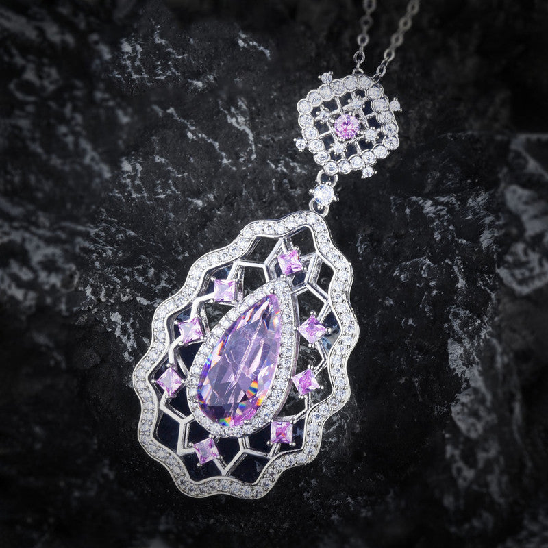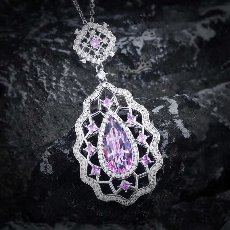 Designs & You Pink Silver Plated AD Studded Cubic Zirconia Necklace