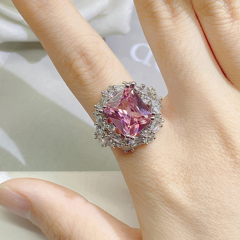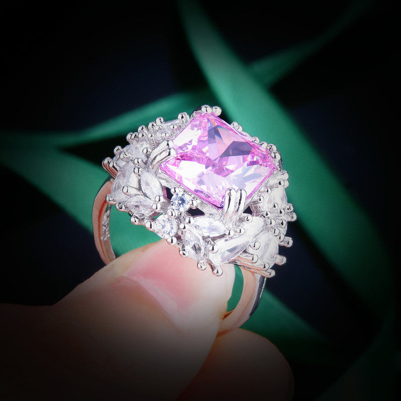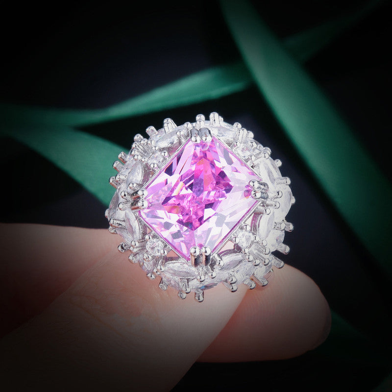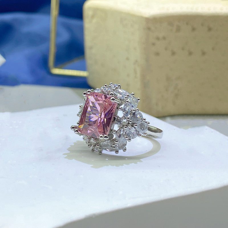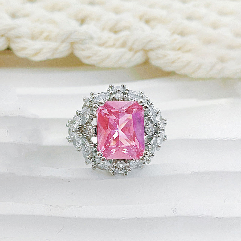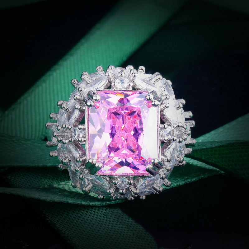Designs & You Pink Silver Plated Cubic Zirconia Stone Studded Adjustable Ring