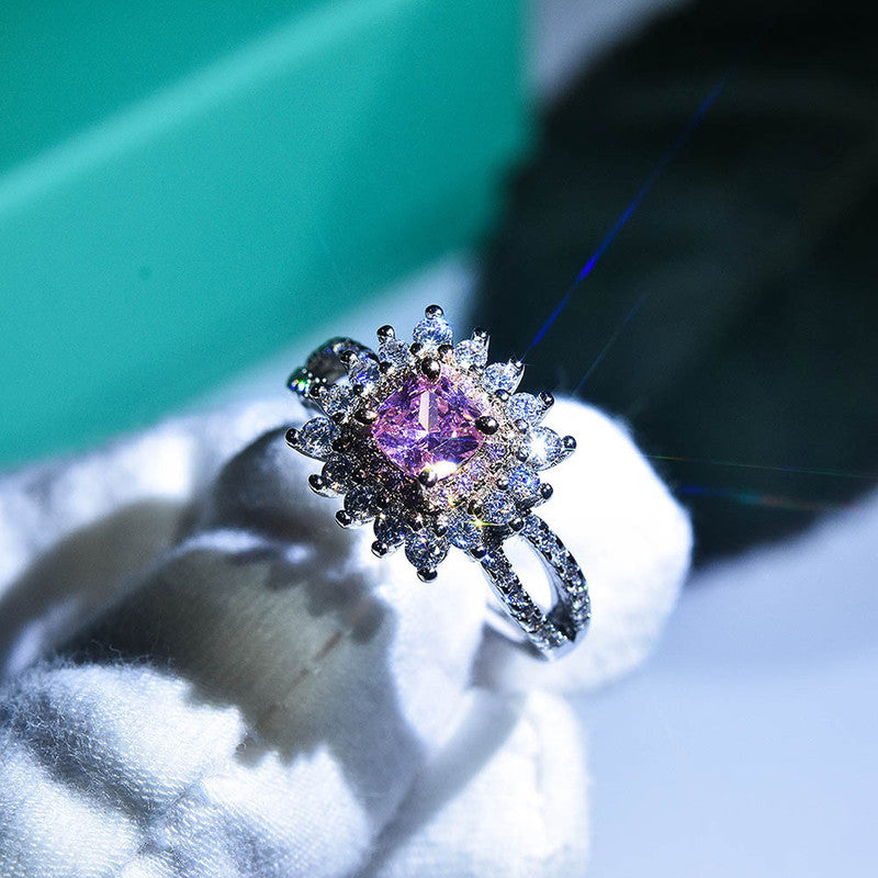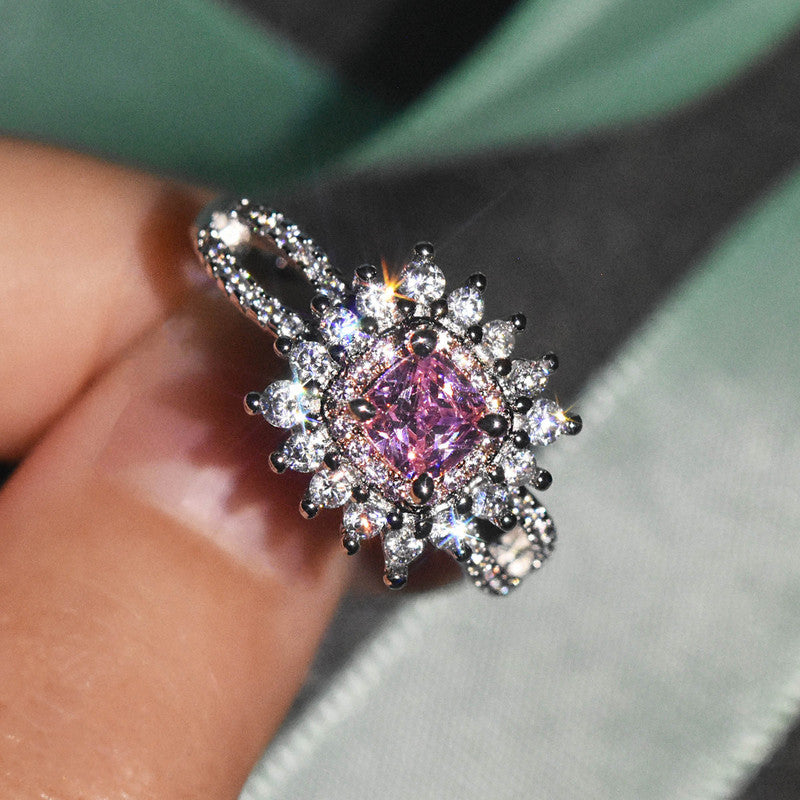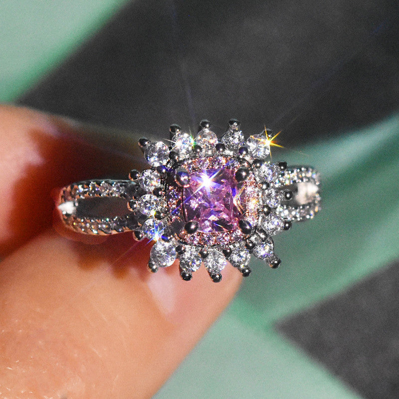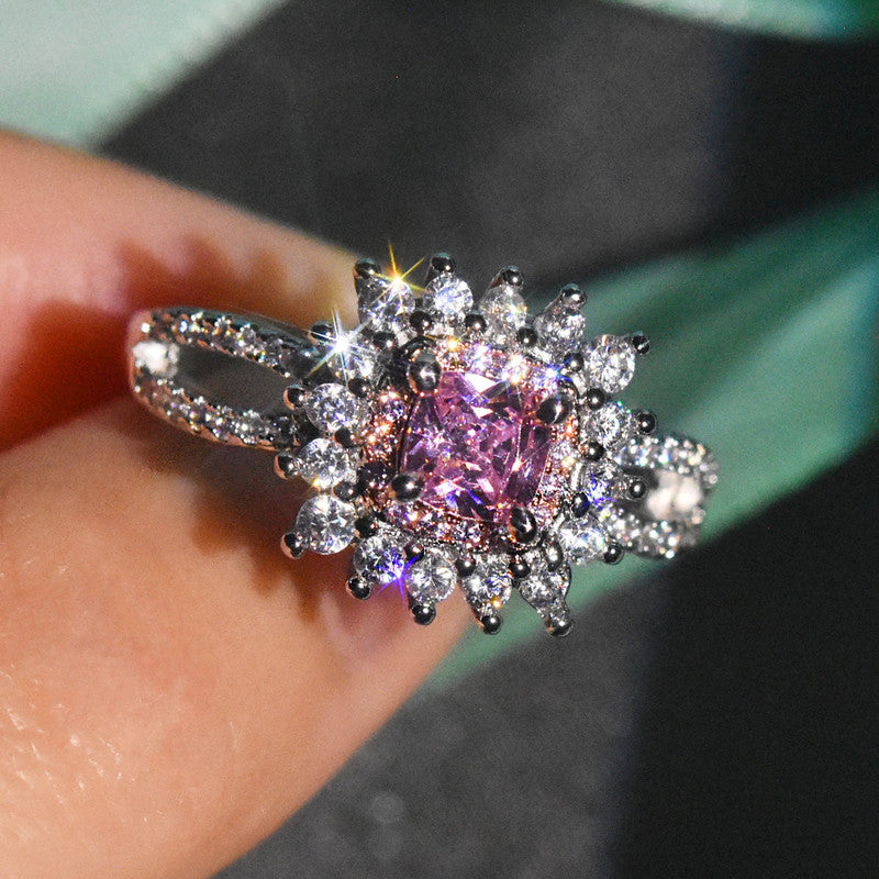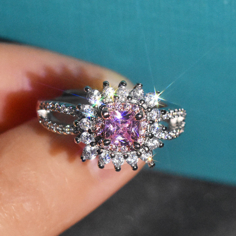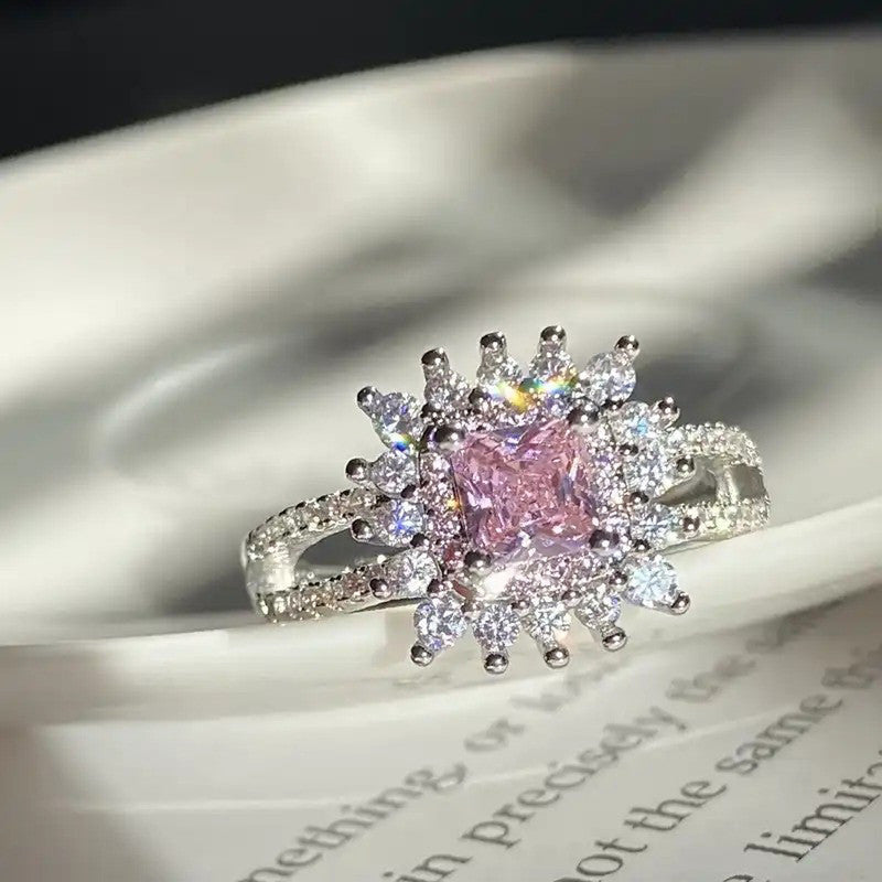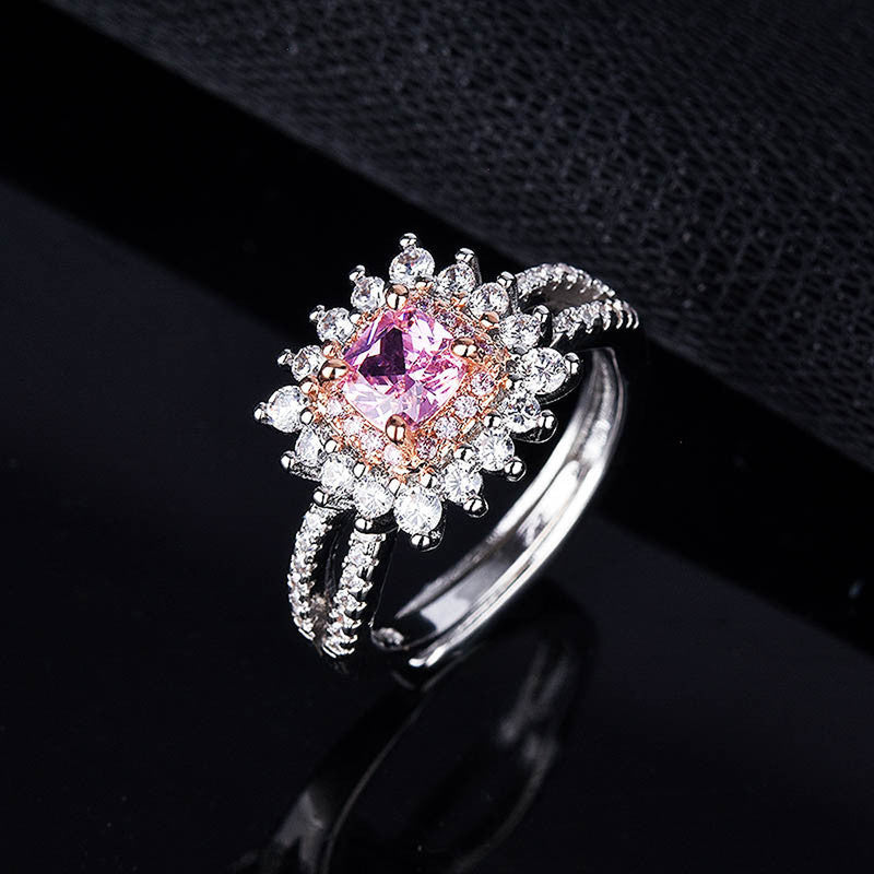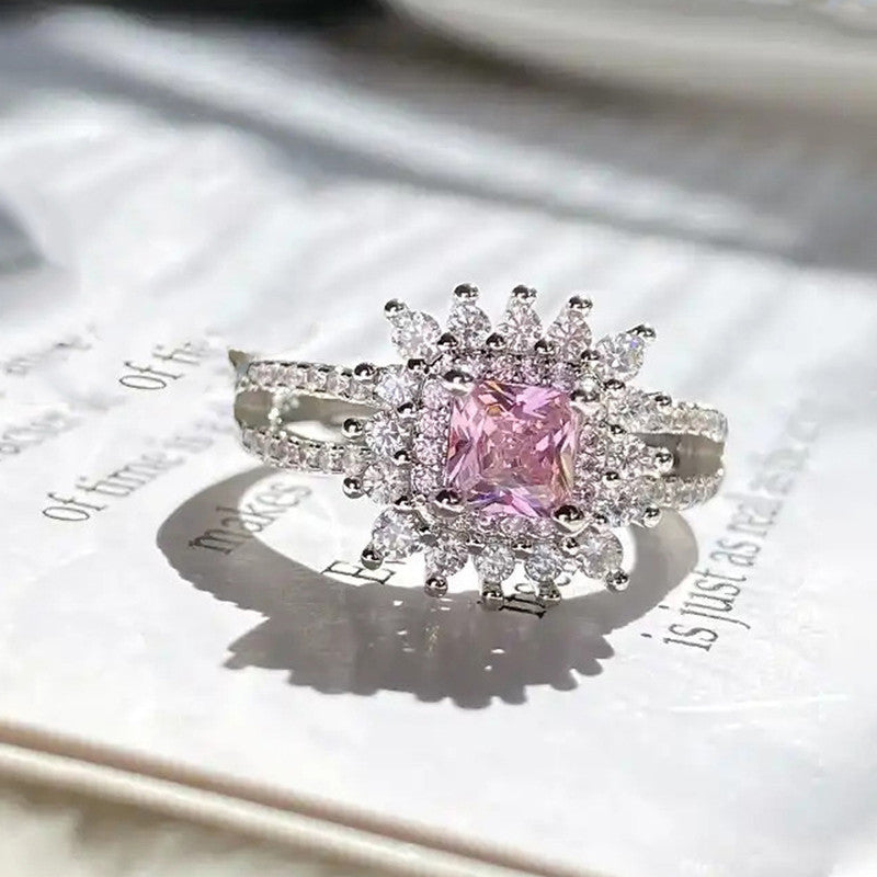 Designs & You Pink Silver Plated Cubic Zirconia Stone Studded Adjustable Ring