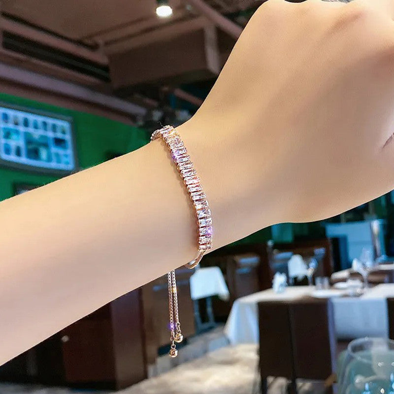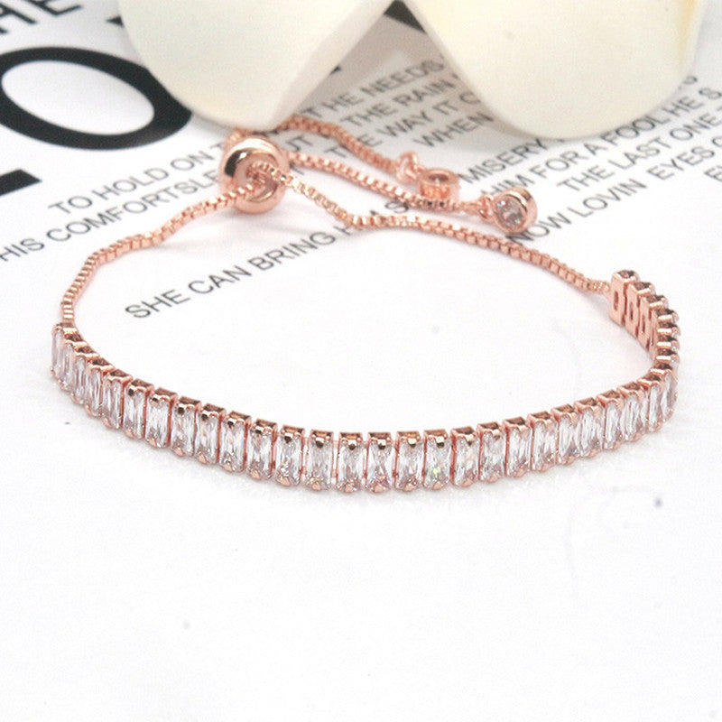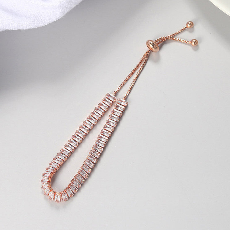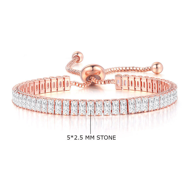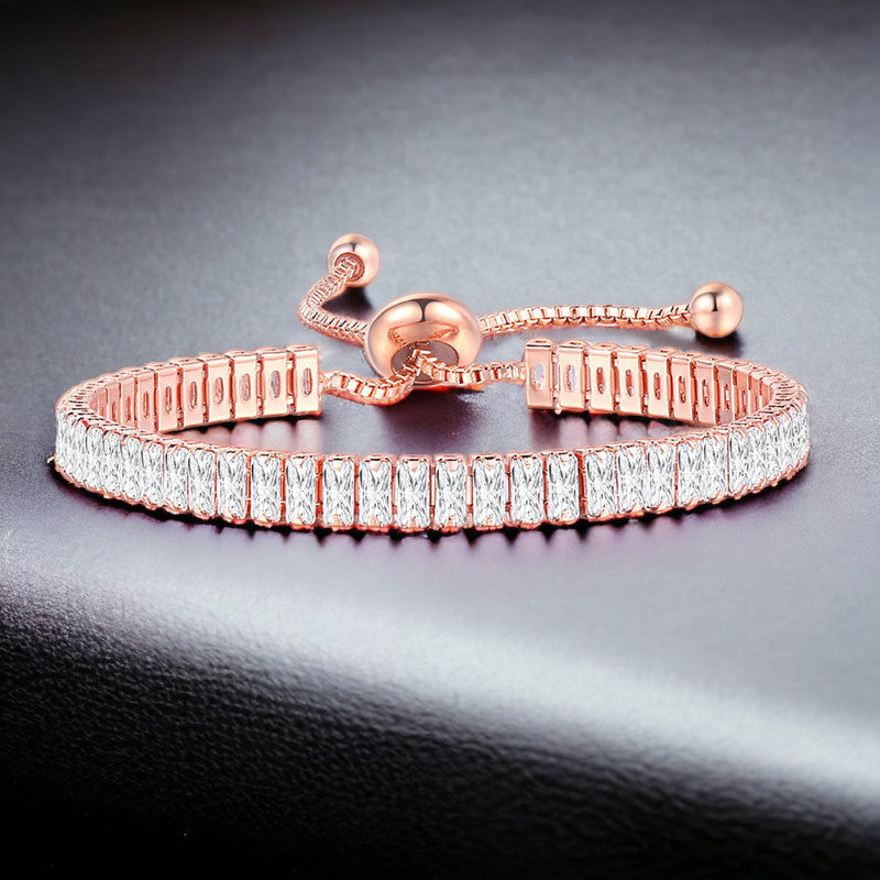 Designs & You Rose Gold Plated Rectangular Cut Cubic Zirconia White Matrix Tennis Bracelet
