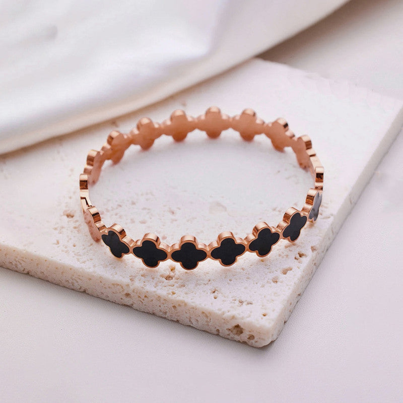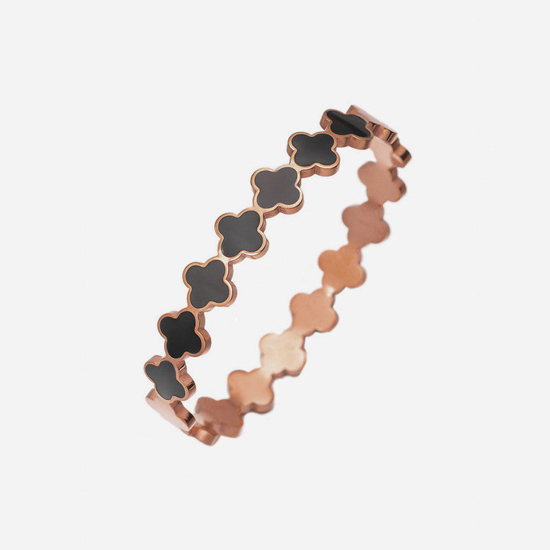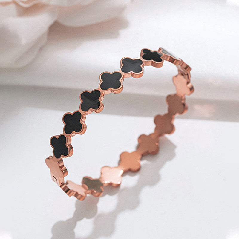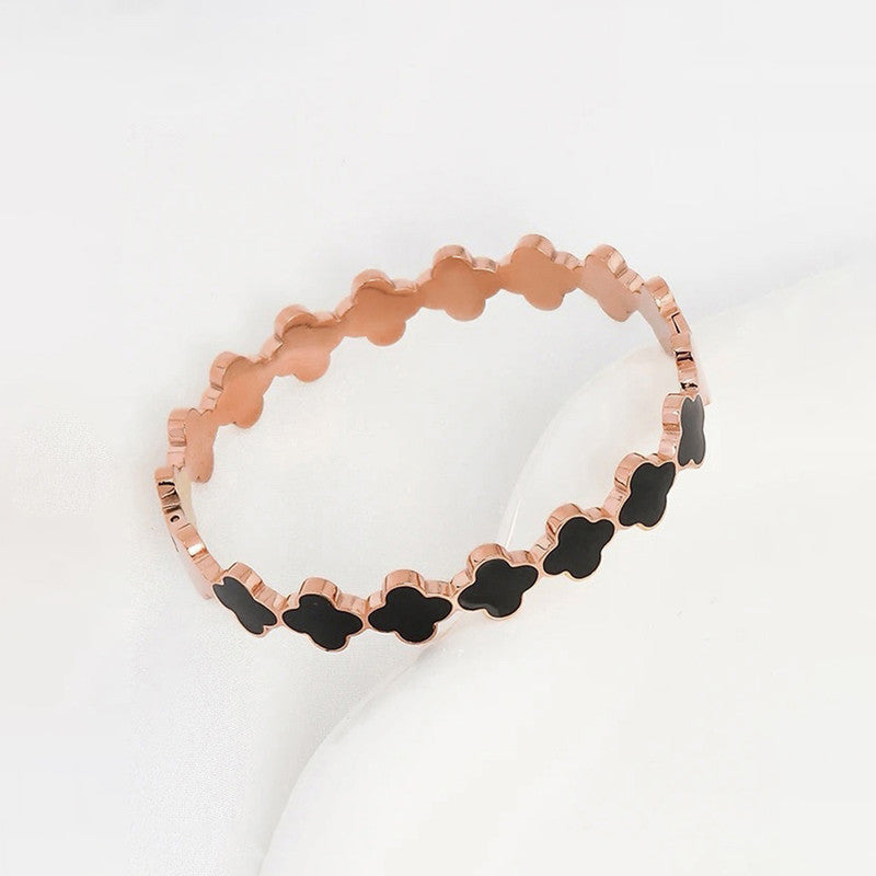 Designs & You Rose Gold Plated Stainless Steel Black Clover Themed Bracelet