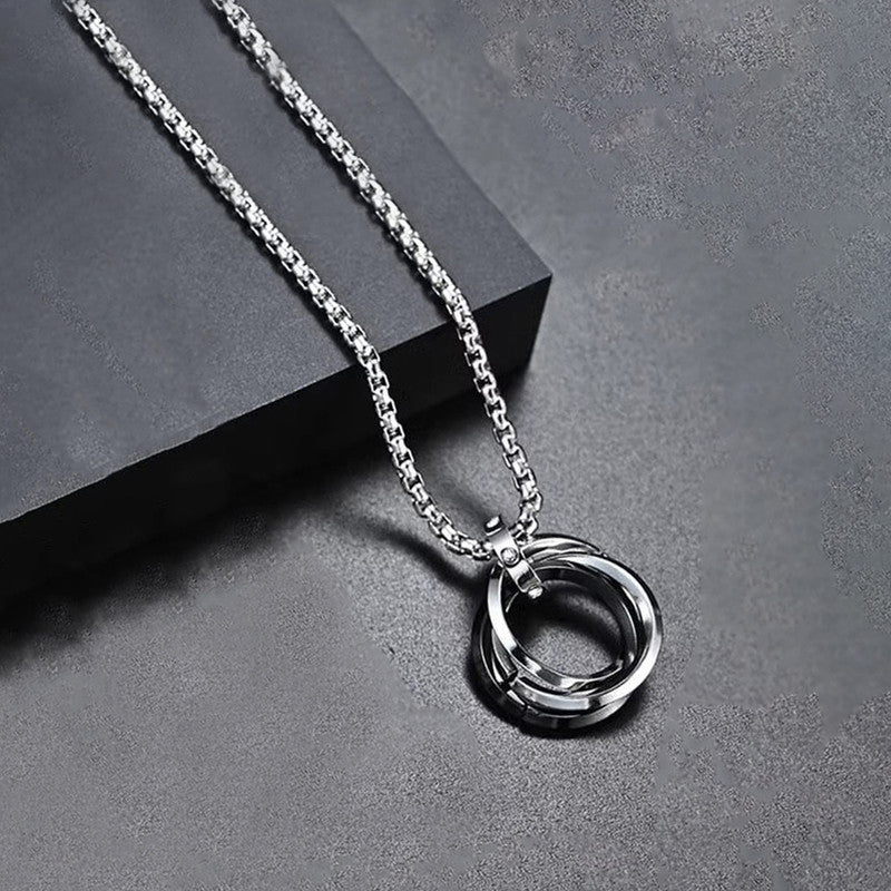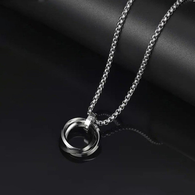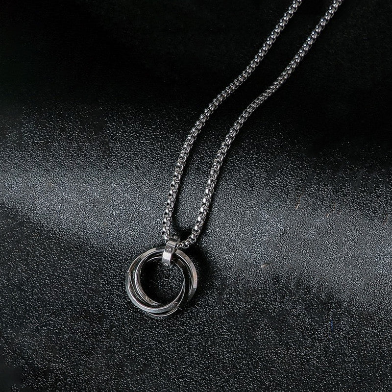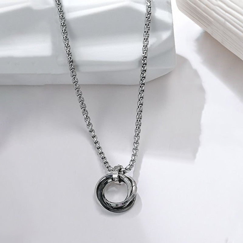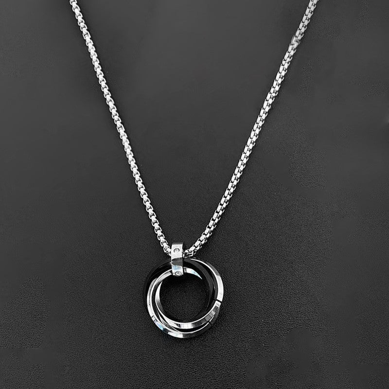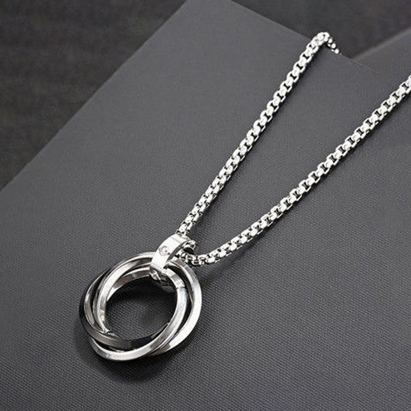 Designs & You Silver Plated Stainless Steel Anti Tarnish Triple Rings Black Circular Pendant