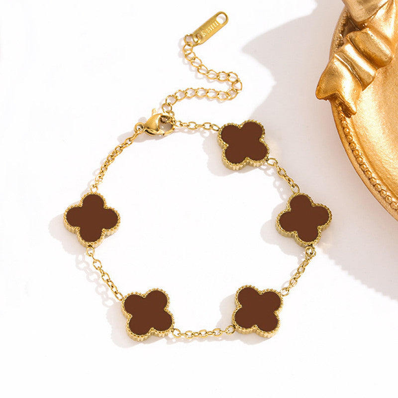 Designs & You Stainless Steel Gold Plated Brown Anti Tarnish Clover Bracelet For Girls And Women