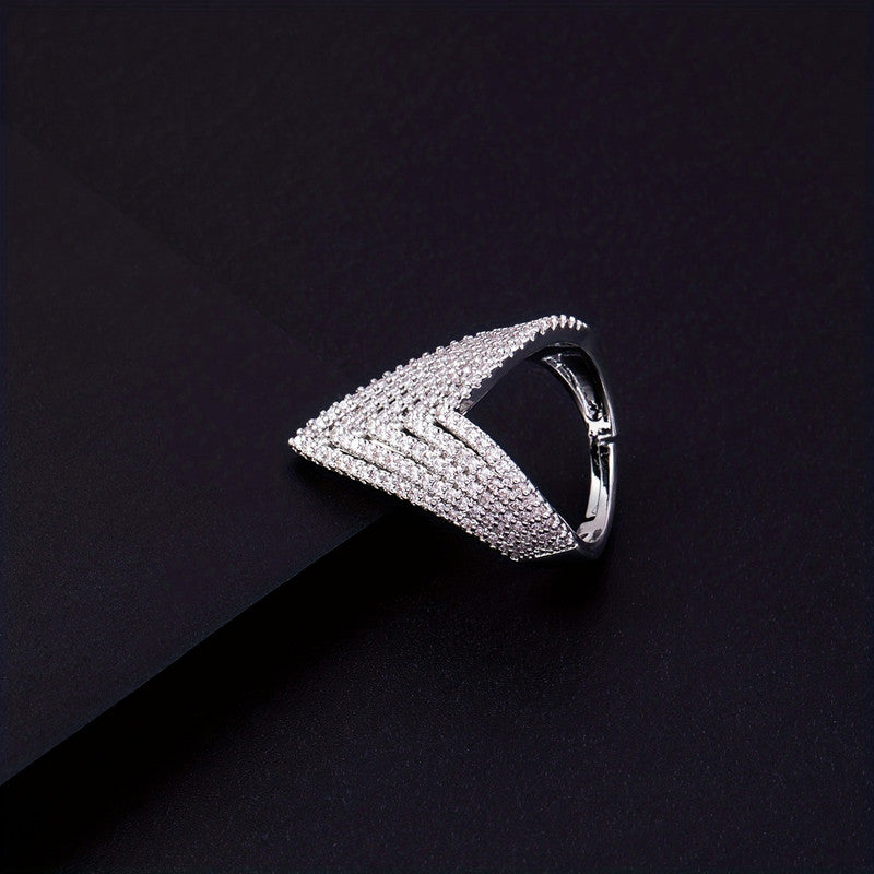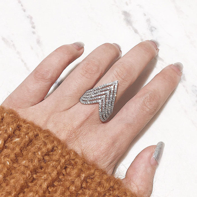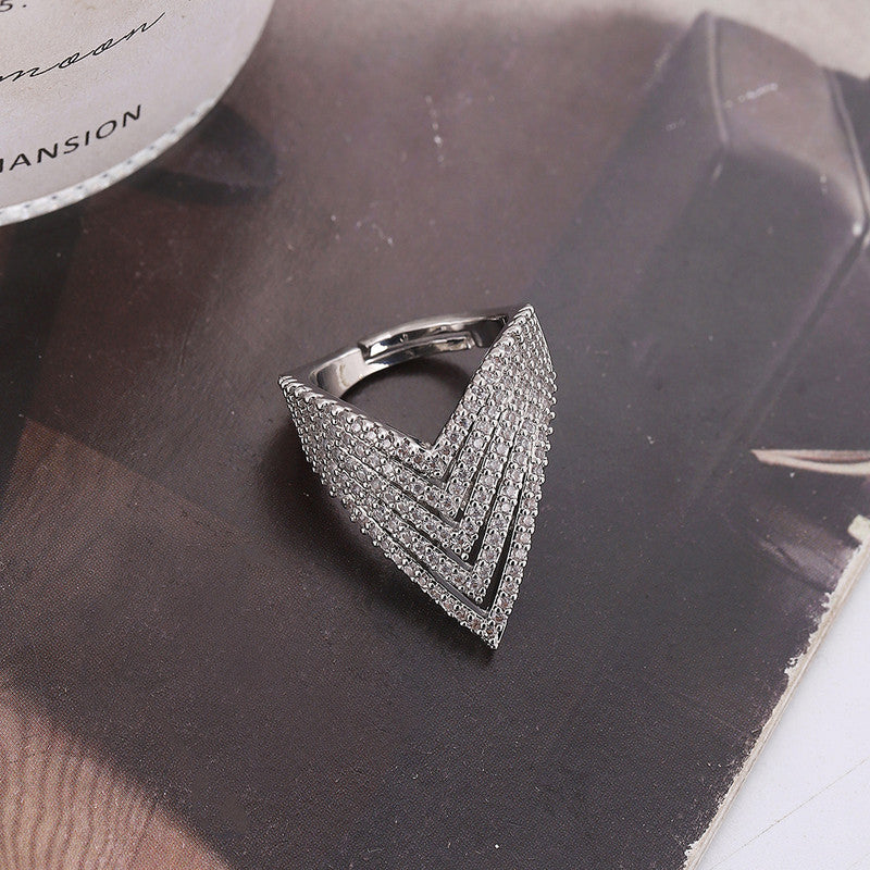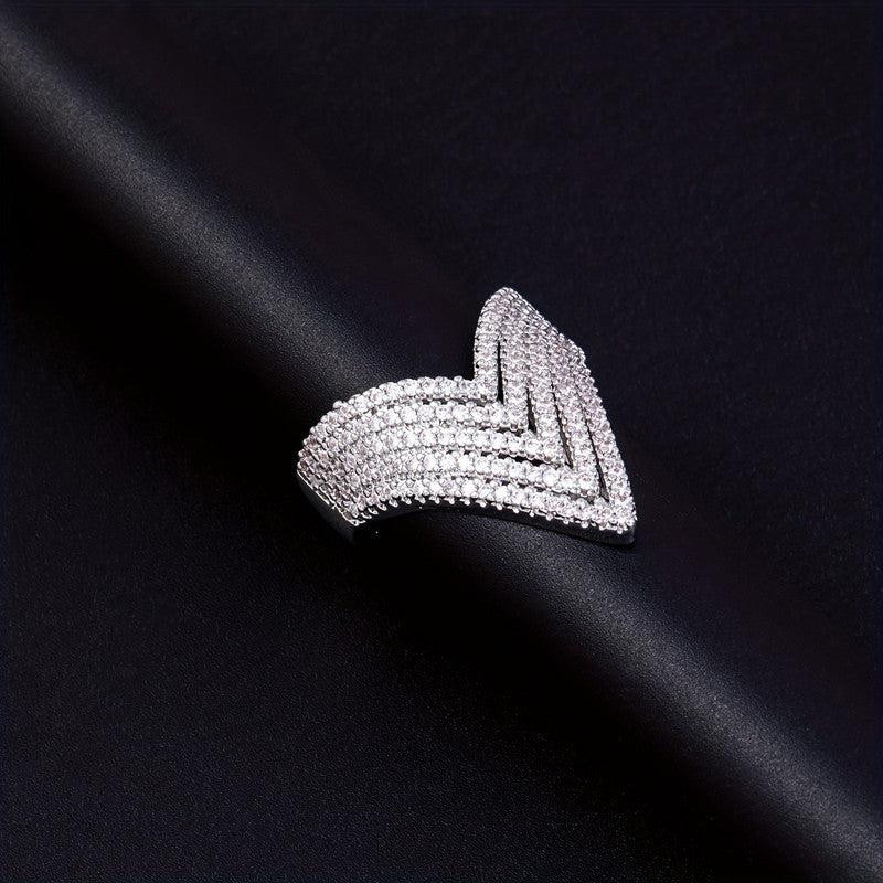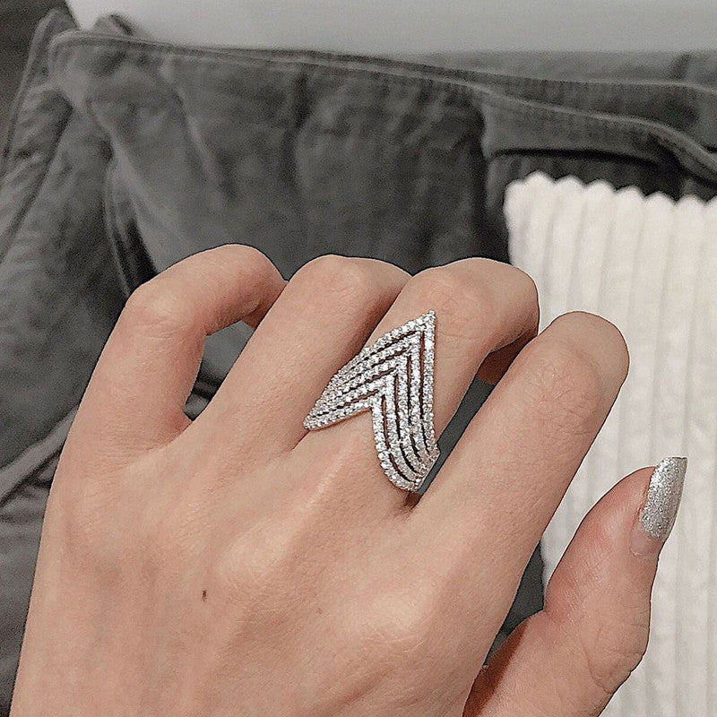 Designs & You White Silver Plated American Diamond Studded Adjustable Ring