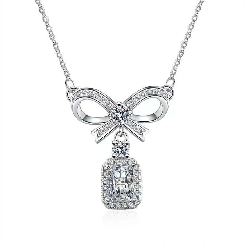 Designs & You White Silver Plated Artificial Stones Minimal Necklace