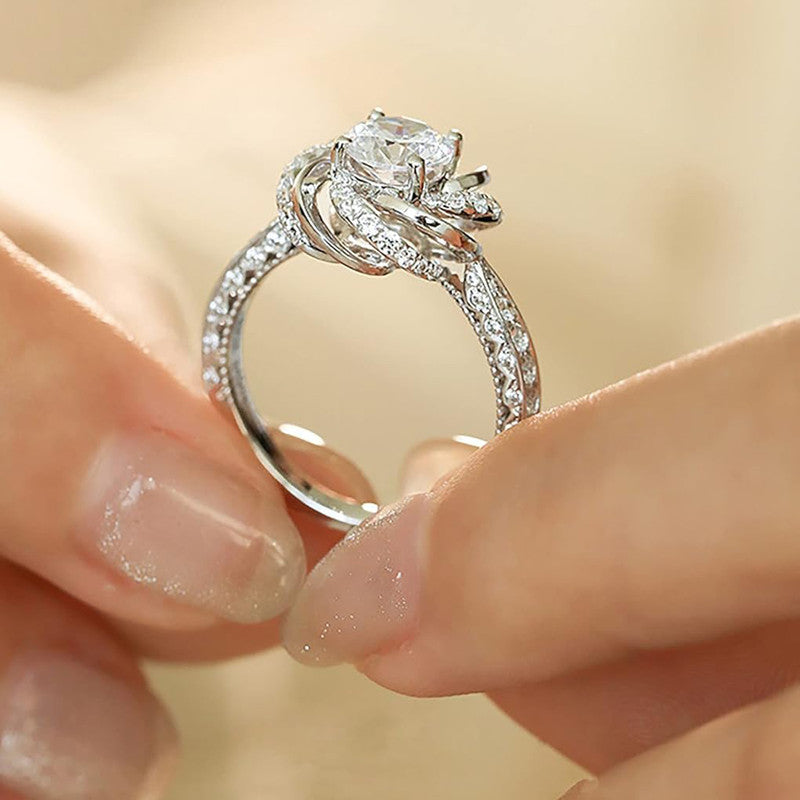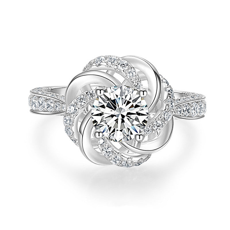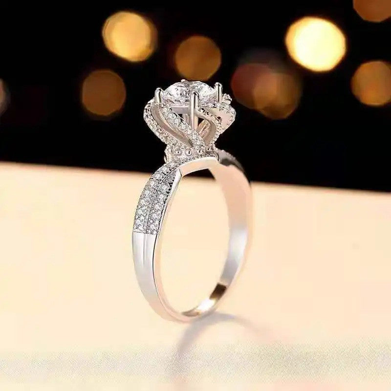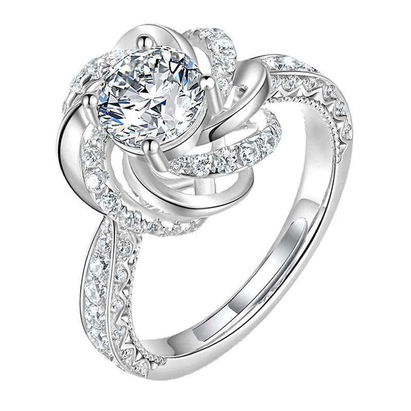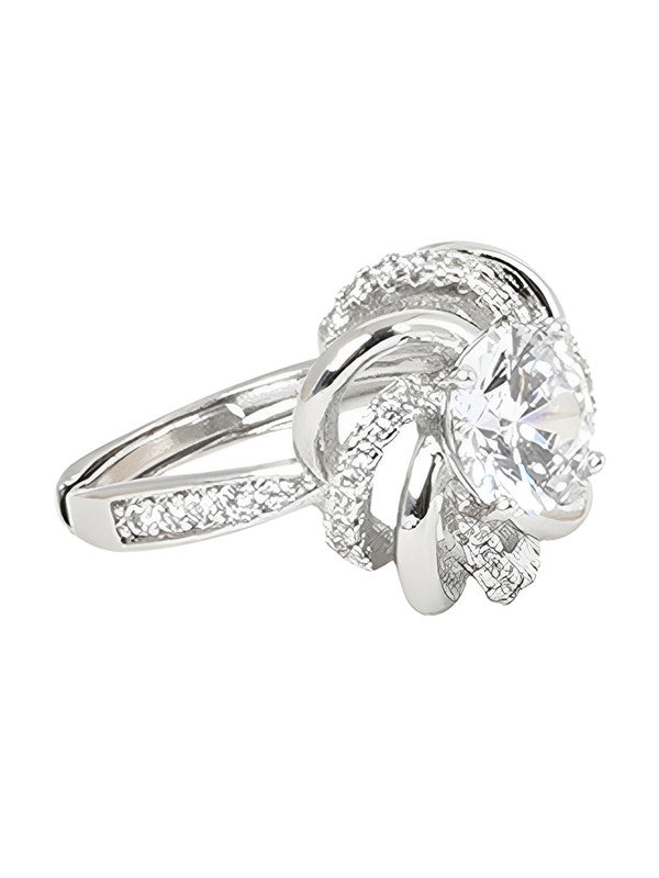 Designs & You White Silver Plated Crystal Stone Studded Anti Tarnish Adjustable Ring