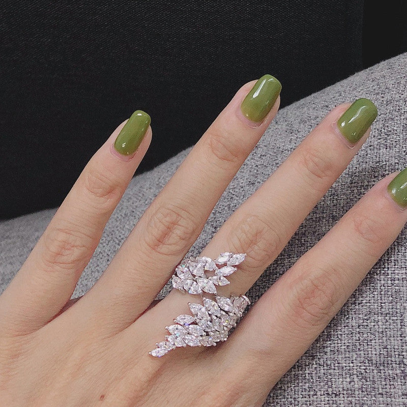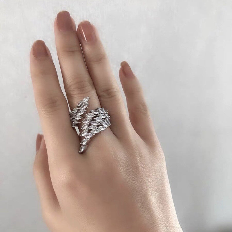 Designs & You White Silver Plated Crystal Stone Studded Anti Tarnish Adjustable Ring
