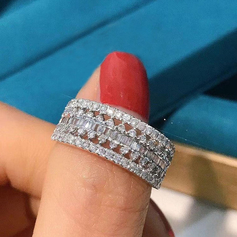 Designs & You White Silver Plated Crystal Stone Studded Anti Tarnish Adjustable Ring
