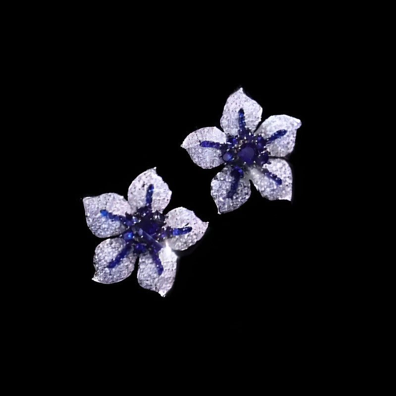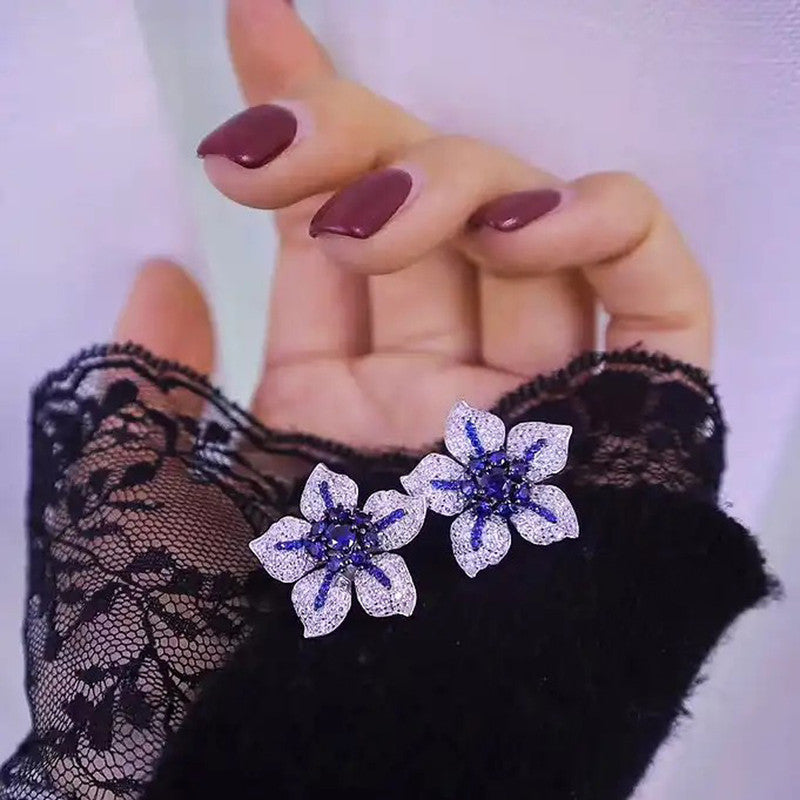 Designs & You Womens Blue Floral Contemporary Stud Earrings