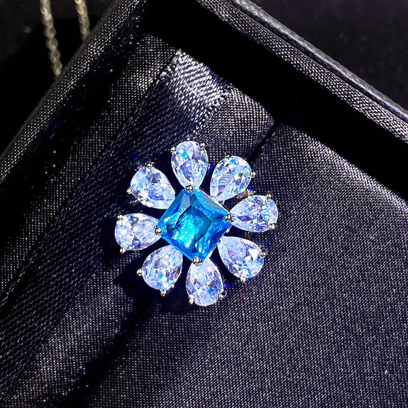 Designs & You Womens Blue Floral Silver Plated Cubic Zirconia Studded