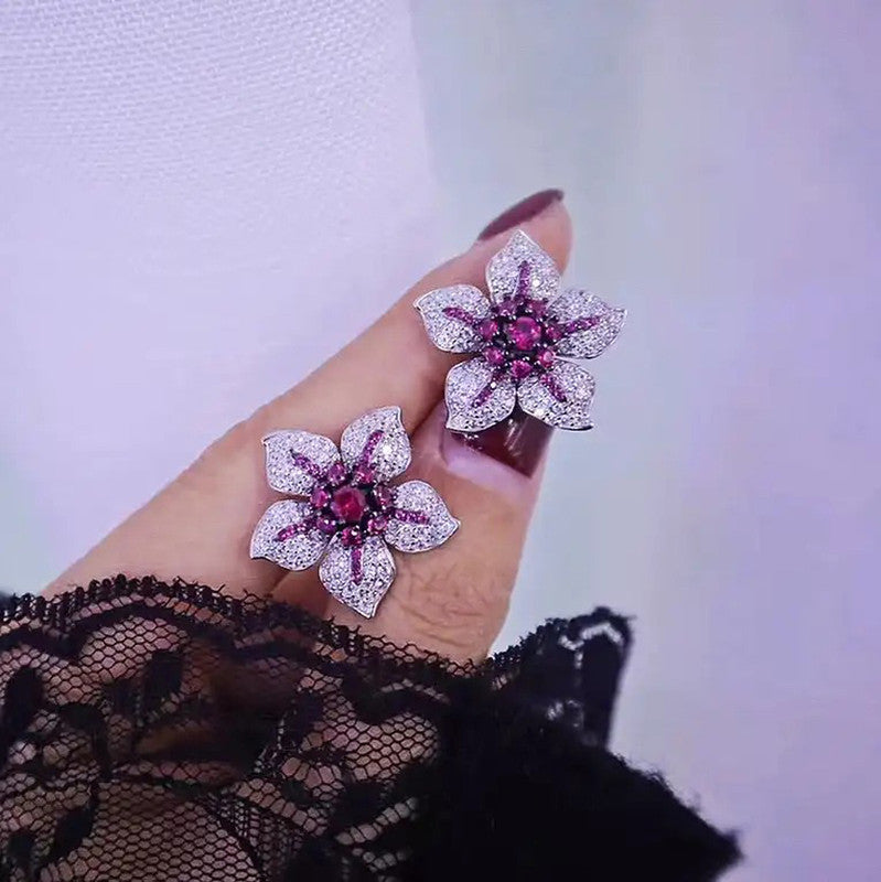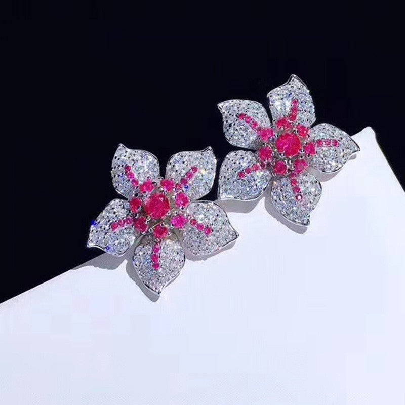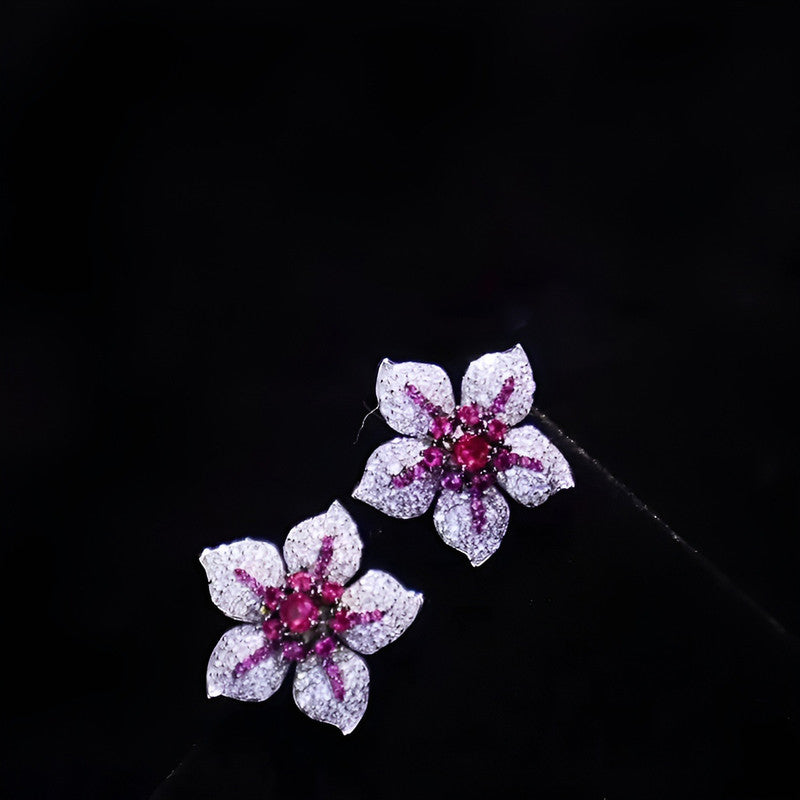 Designs & You Womens Pink Floral Contemporary Stud Earrings