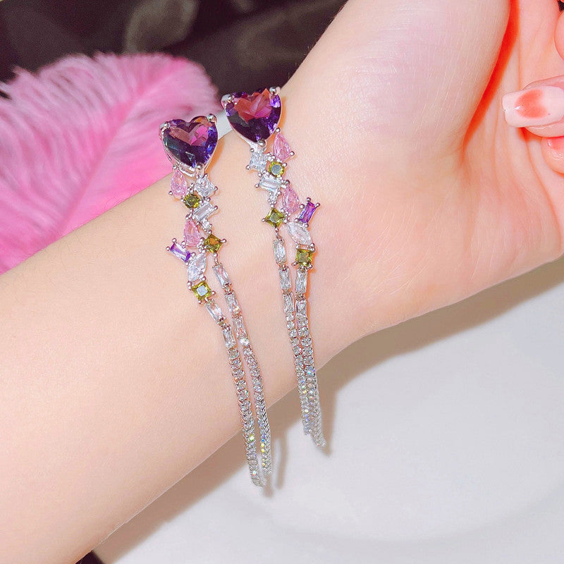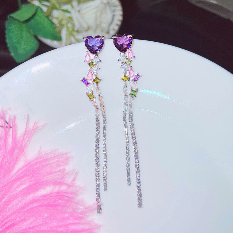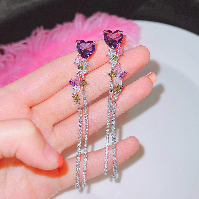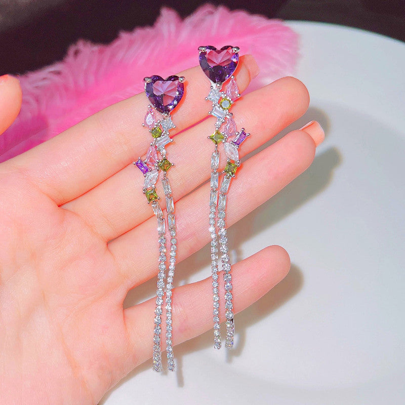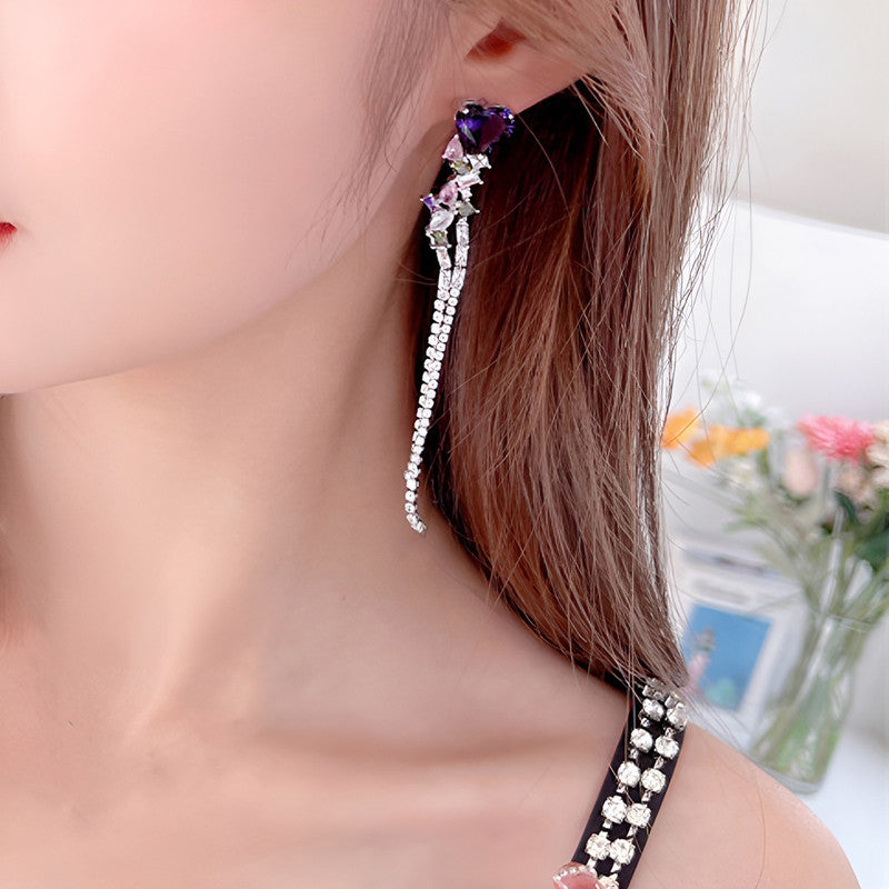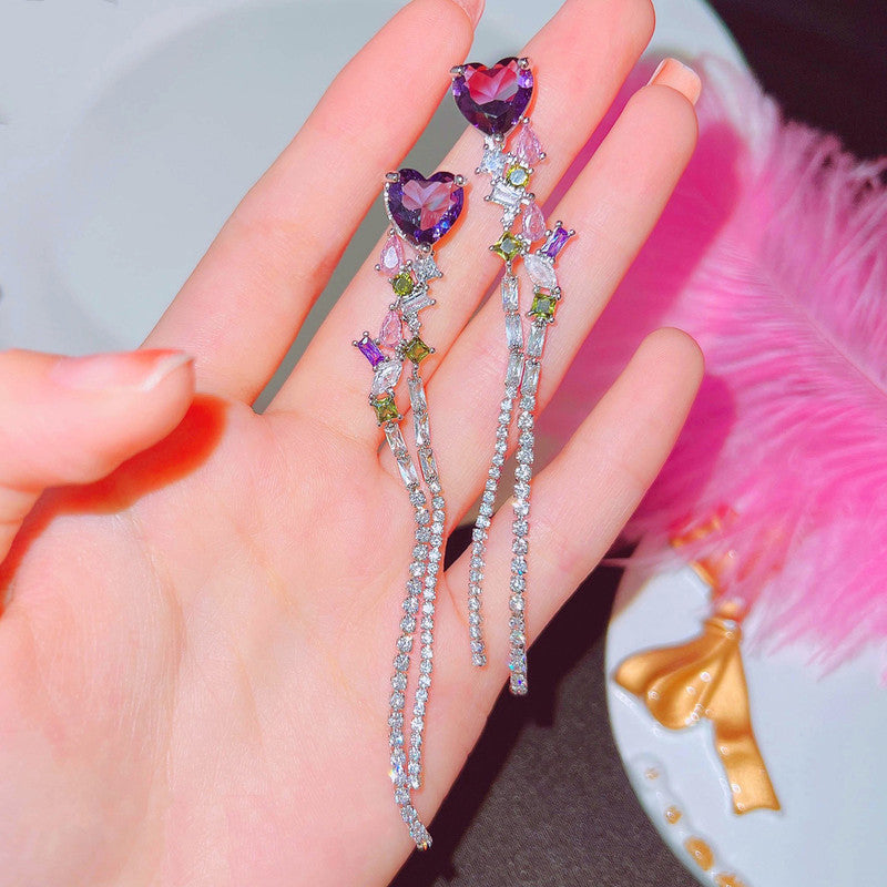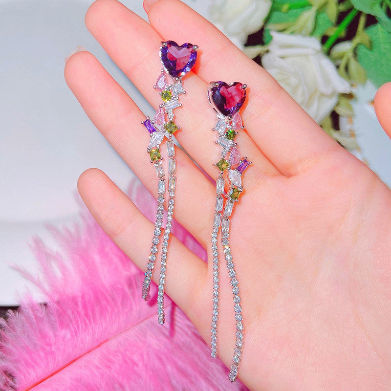 Designs & You Womens Silver Plated American Diamond Studded Heart Shaped Teardrop Earrings