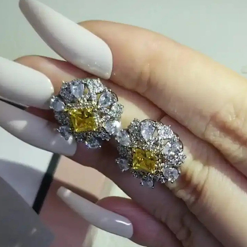 Designs & You Womens Yellow Floral Contemporary Stud Earrings