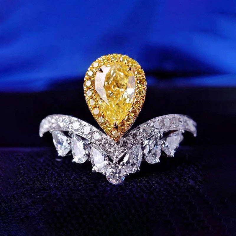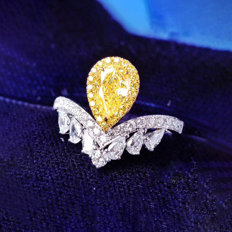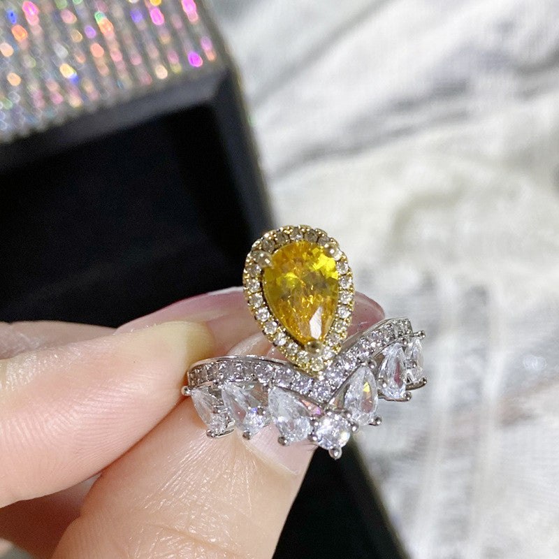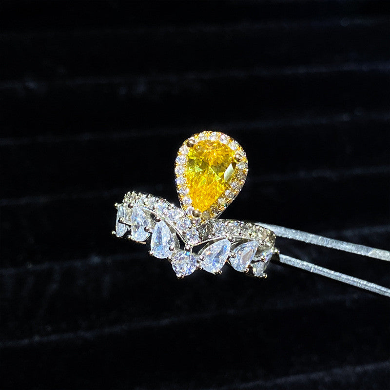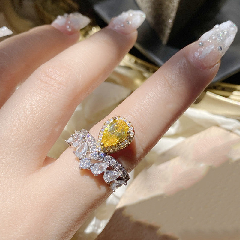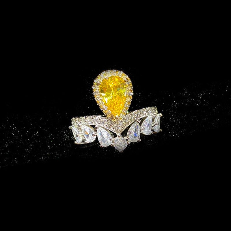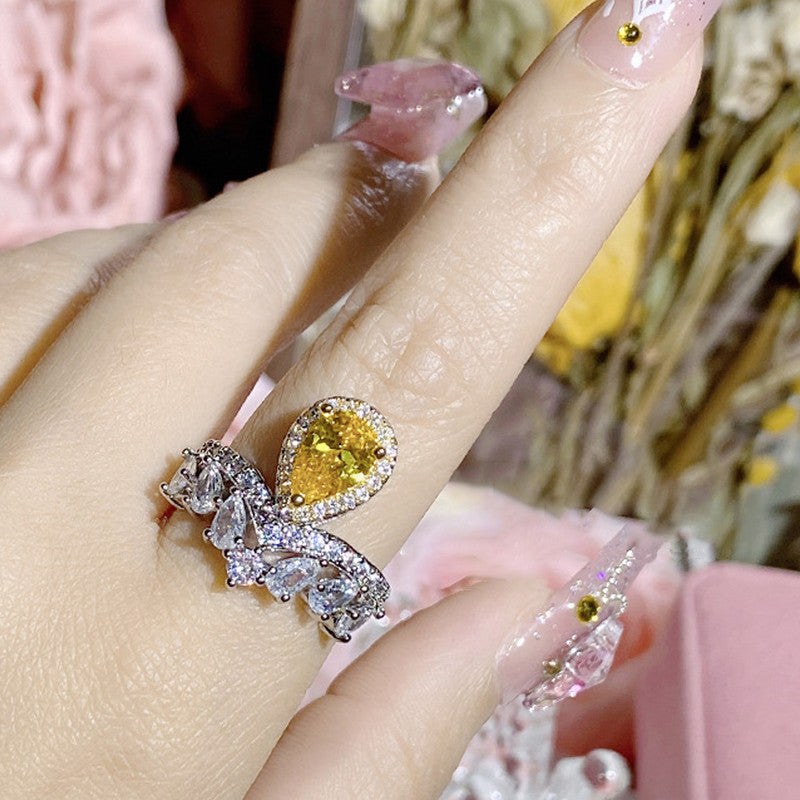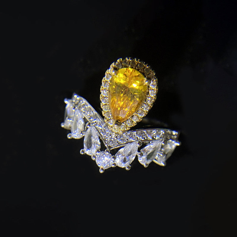 Designs & You Yellow Silver Plated American Diamond Stone Studded Adjustable Ring