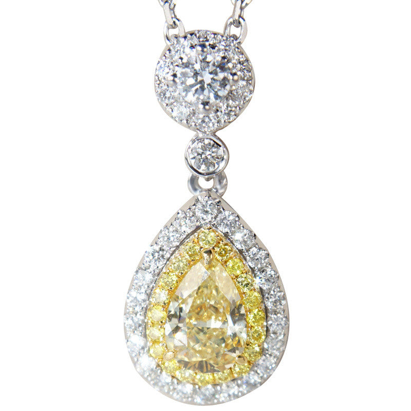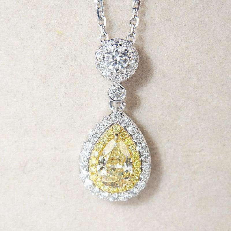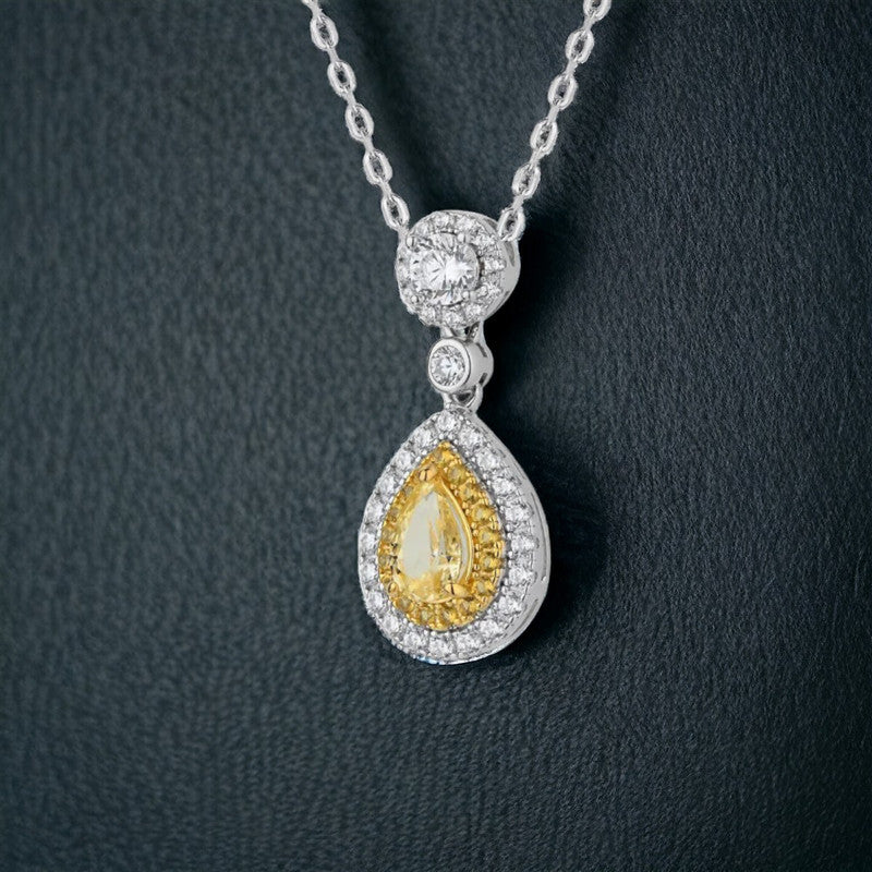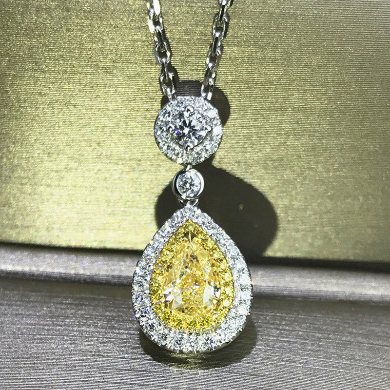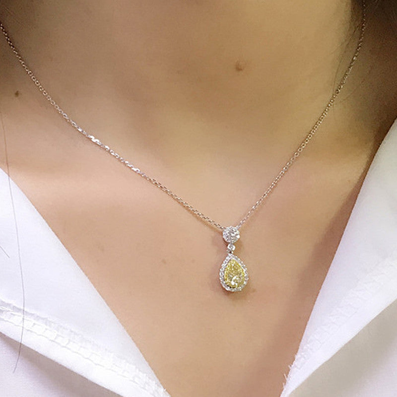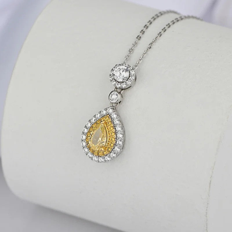 Designs & You Yellow Silver Plated American Diamond Studded Teardrop Shaped Necklace
