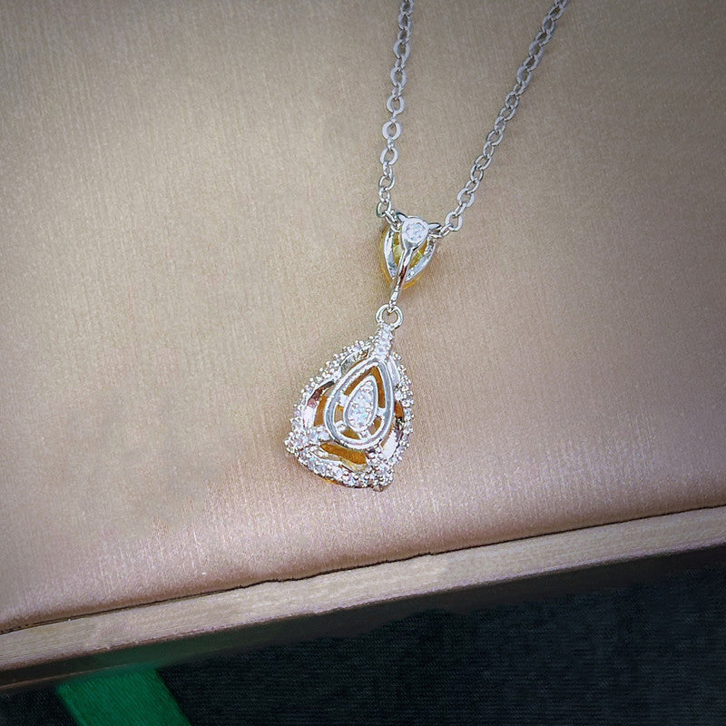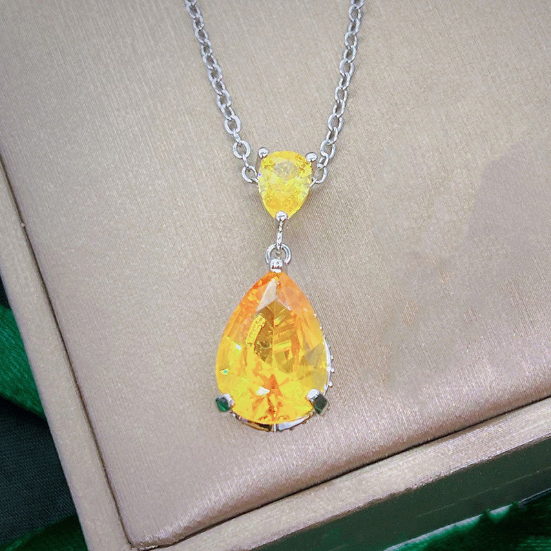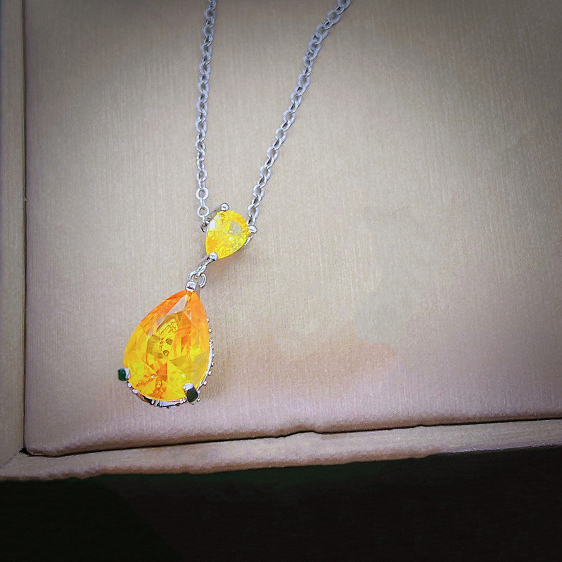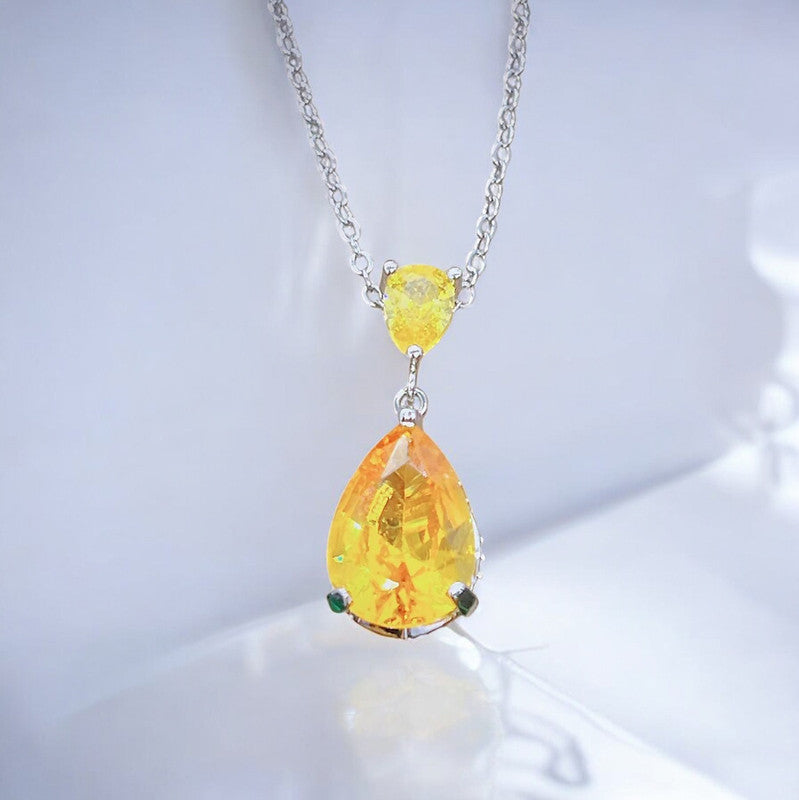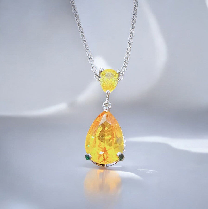 Designs & You Yellow Silver Plated Cubic Zirconia Teardrop Shaped Necklace